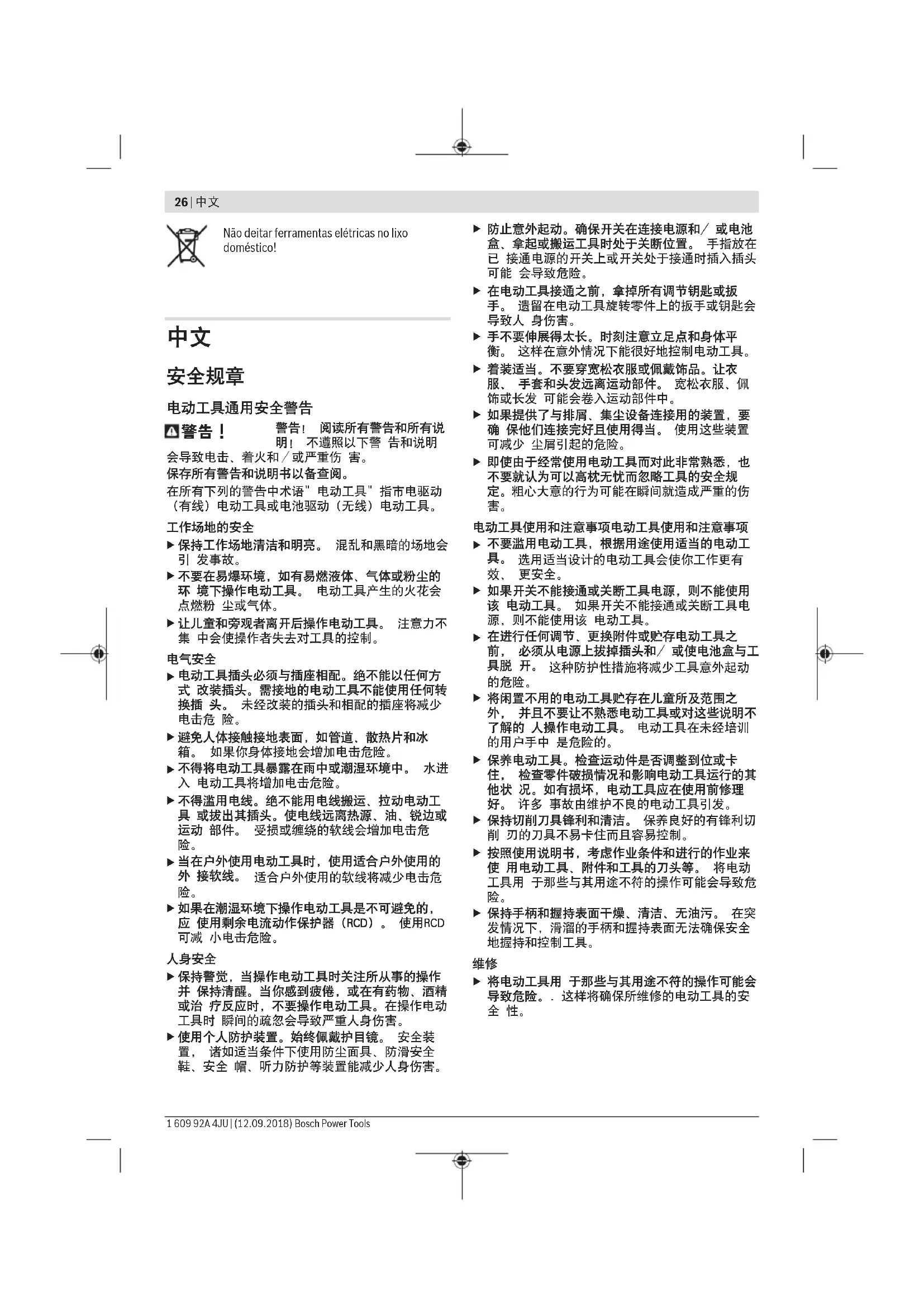 请注意本使用说明书开头部分的图示。 中文 | 27 Bosch Power Tools 1 609 92A 4JU | (12.09.2018)28 | 中文 1 609 92A 4JU | (12.09.2018) Bosch Power Tools