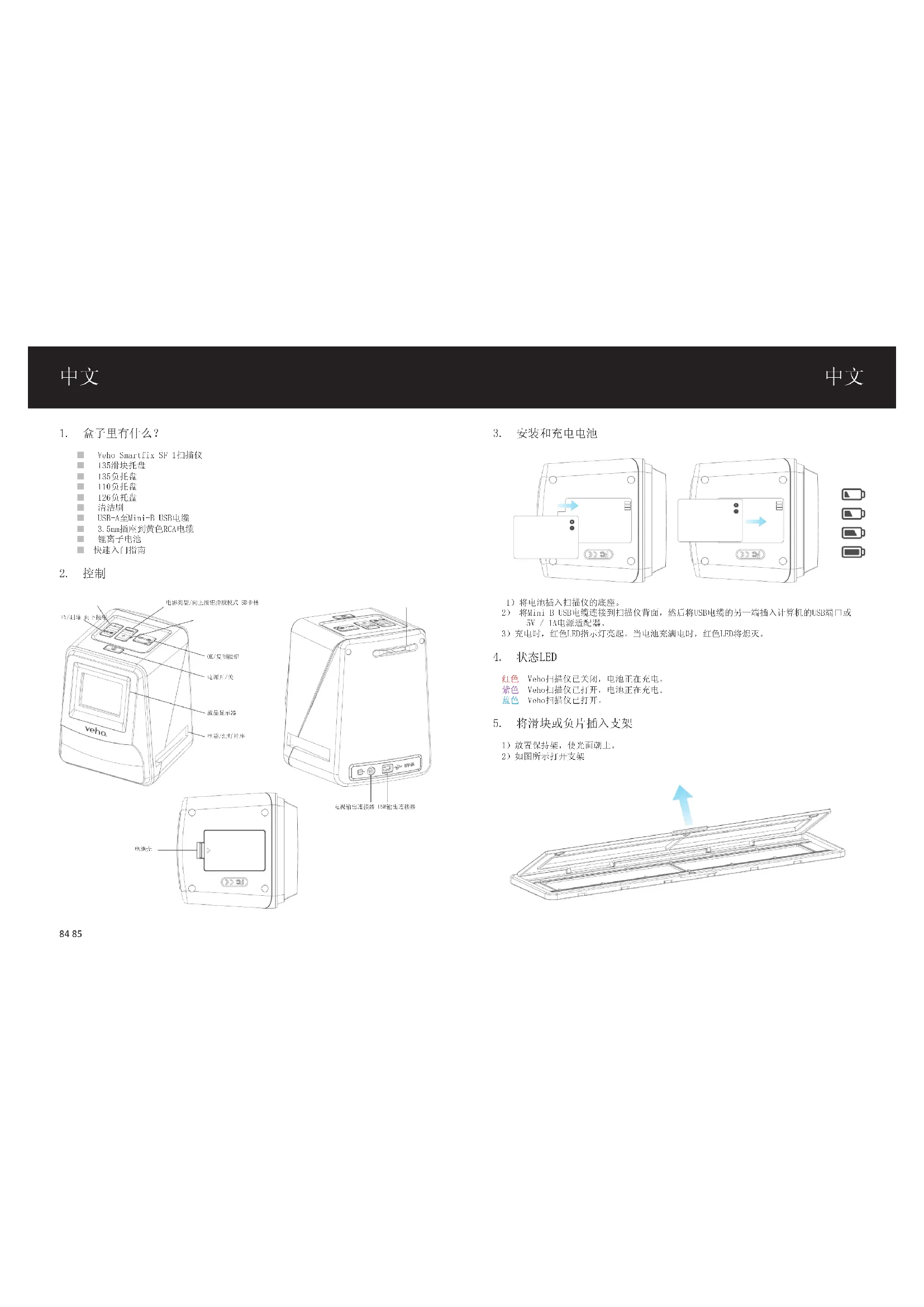 PC系统要求 ¢ Pentium®P41.6GHz或等效的AMDAthlon ¢ 免费USB2.0端口 ¢ 512MBRAM ¢ 500MB可用硬盘空间 ¢ 1024x768像素彩色显示器 ¢ CD-ROM驱动器 ¢ Windows®XPServicePackII/Vista™,32/64位 Windows7/Windows8/Windows10 Mac系统要求 ¢ 推荐使用PowerPCG5或IntelCoreDuo处理器 ¢ 免费USB2.0端口 ¢ 768MBRAM ¢ 500MB可用硬盘空间 ¢ 1024x768彩色显示器 ¢ CD-ROM驱动器 ¢ Mac10.5〜Up 产品上或说明书中的此符号意味着您的电气和电子设备应与生活垃圾分开处理。在欧盟有独立的回收系统。有关更多信息,请联系您购买产品的地方当局或您的零售商。在使用VFS-014-SF(Veho扫描仪)之前,请确保阅读并理解下述安全注意事项。务必确保VFS-014-SF的运行正常。不得在飞机内部使用VFS-014-SF或其他任何其他操作此类设备的场合。不当使用会造成严重事故的风险。不要尝试打开VFS-014-SF的情况,或尝试以任何方式修改VFS-014-SF。高压内部元件暴露时会造成触电危险。维护和维修只能由授权的服务提供商进行。使VFS-014-SF远离水和其他液体。请勿用湿手使用VFS-014-SF。在雨或雪中切勿使用VFS-014-SF。潮湿会造成火灾和电击的危 将VFS-014-SF及其附件放在儿童和动物触手可及的地方,以防止VFS-014-SF发生事故或损坏。在使用过程中,VFS-014-SF可能变得温和。这是正常的,不表示故障。如果VFS-014-SF的外部需要清洁,请用柔软的干布擦拭。如果您发现VFS-014-SF产生的烟雾或异味,请立即关闭电源。将VFS-014-SF带到最近的授权服务中心进行维修。不要自己修理VFS-014-SF。只能使用推荐的电源附件。使用未明确推荐用于VFS-014-SF的电源可能导致过热,设备变形,火灾,触电或其他危险。FCC通知该设备已经过测试,符合FCC规则第15部分对B类数字化设备的限制。这些限制旨在提供合理的保护,防止住宅安装中的有害干扰。该设备产生,使用并可以辐射射频能量。如果没有按照说明进行安装和使用,可能会对无线电通信造成有害干扰。但是,不能保证特定安装中不会发生干扰。如果本设备确实对无线电或电视接收造成有害干扰,可以通过将设备关闭来确定,建议用户尝试通过以下一个或多个建议来纠正干扰。• 重新调整或摆放接收天线。• 增加设备与接收器之间的距离。• 将设备连接到不同于接收机连接的电源插座。• 咨询有经验的电视或无线电技术人员寻求帮助。 为符合B类数字化设备的限制,根据FCC规则第15部分,本设备只能安装在经认证符合B类限制的计算机设备上。本机可能包含用于信号处理和控制功能的微型计算机。在非常罕见的情况下,严重的干扰,外部来源的噪音或静电可能会导致锁定。在不太可能发生这种情况的情况下,请关闭本机,等待至少五秒钟,然后重新打开。 其他Veho产品