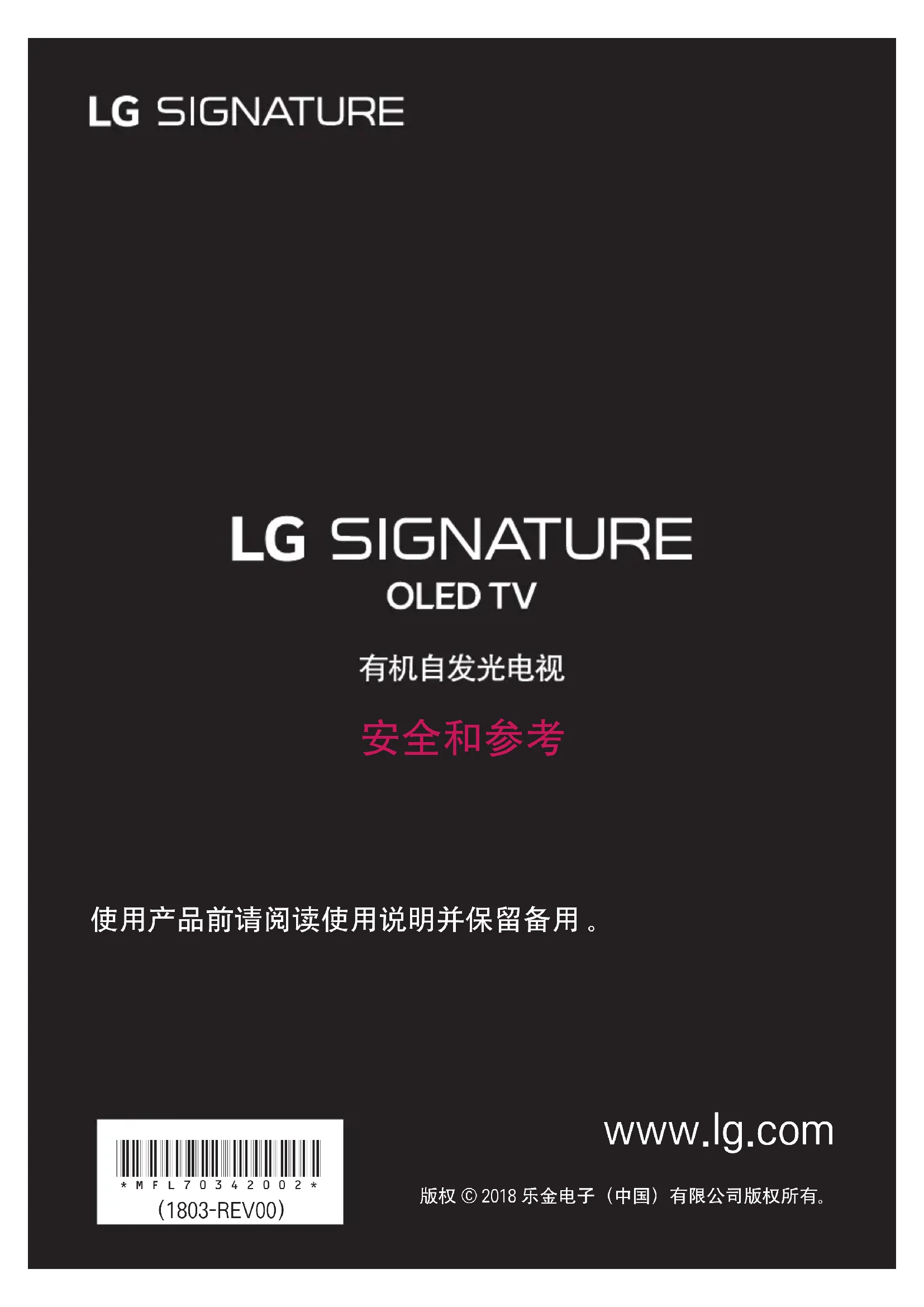 使用产品前请阅读使用说明并保留备用 。 版权 © 2018 乐金电子(中国)有限公司版权所有。 *MFL70342002* (1803-REV00)2