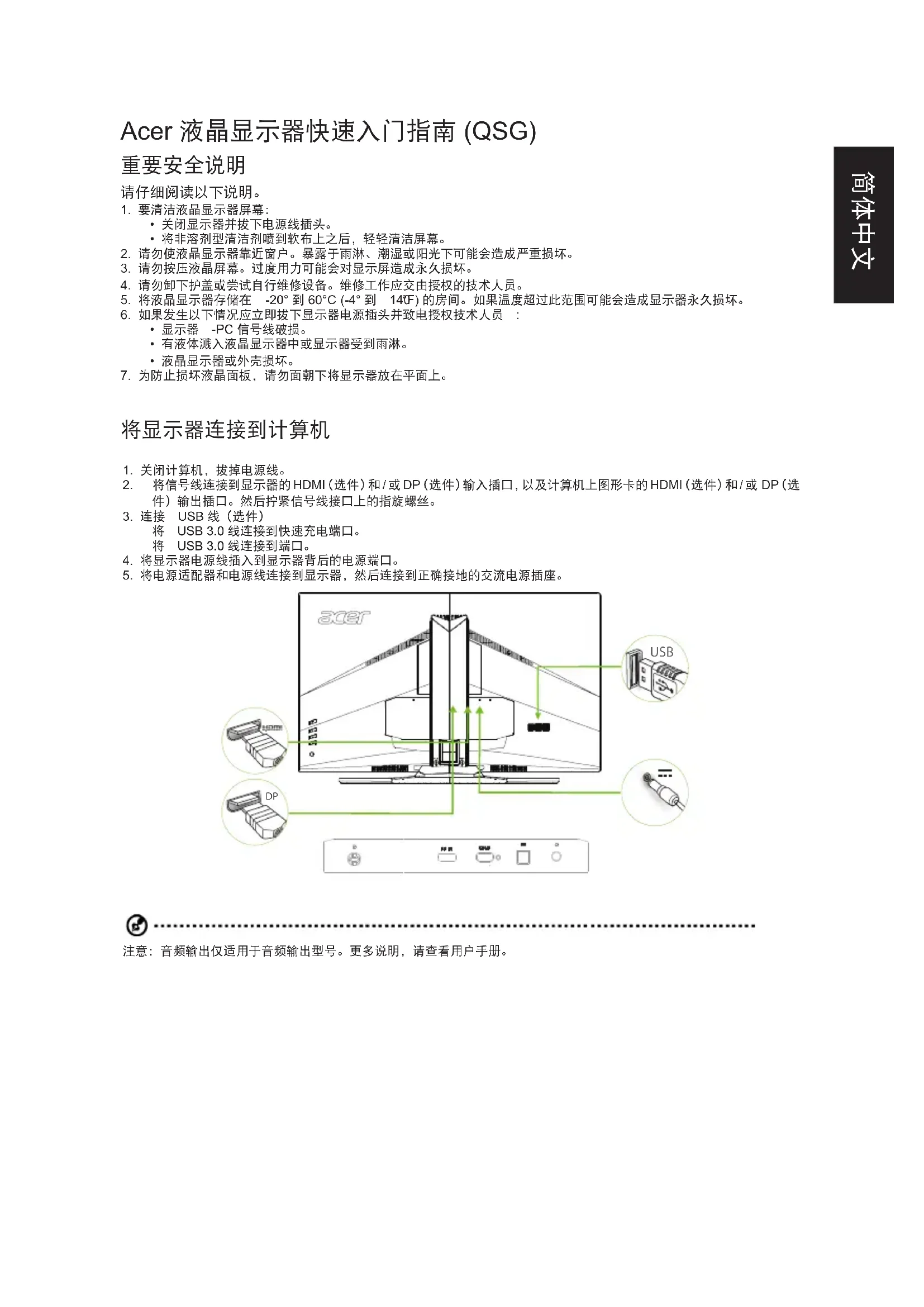 USB 注意:音频输出仅适用于音频输出型号。更多说明,请查看用户手册。简体中文