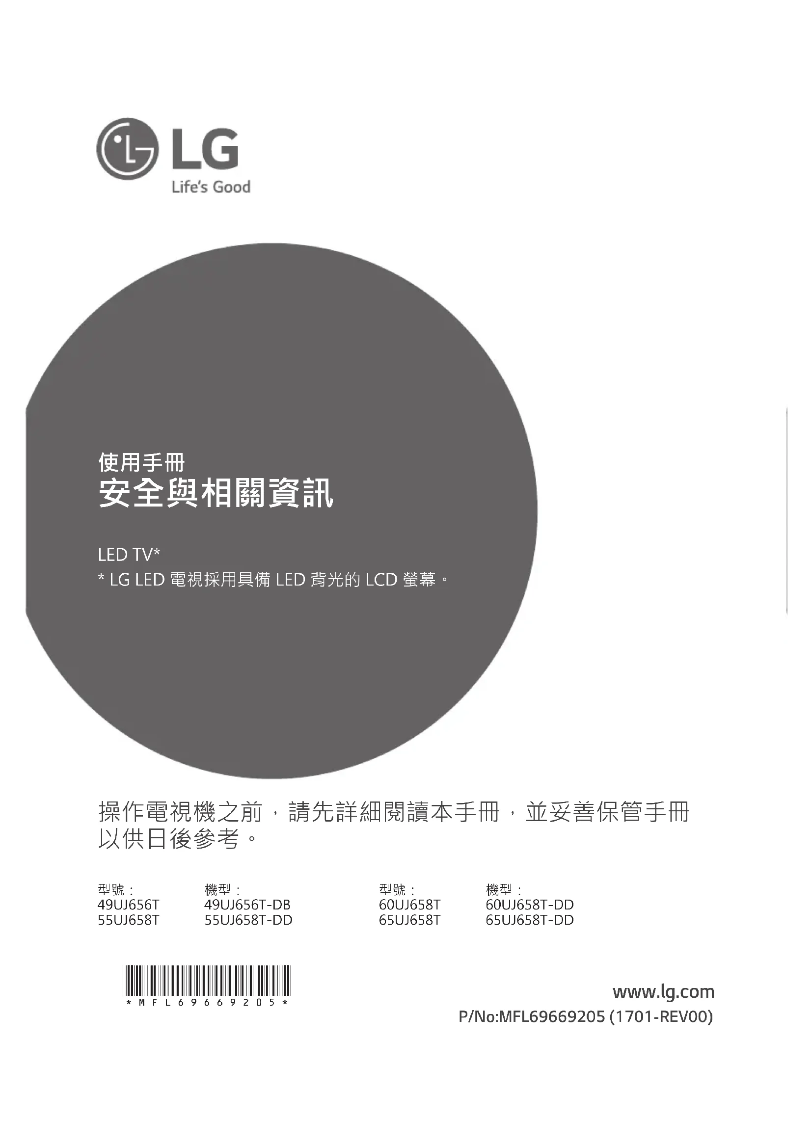 P/No:MFL69669205 (1701-REV00) www.lg.com 操作電視機之前,請先詳細閱讀本手冊,並妥善保管手冊