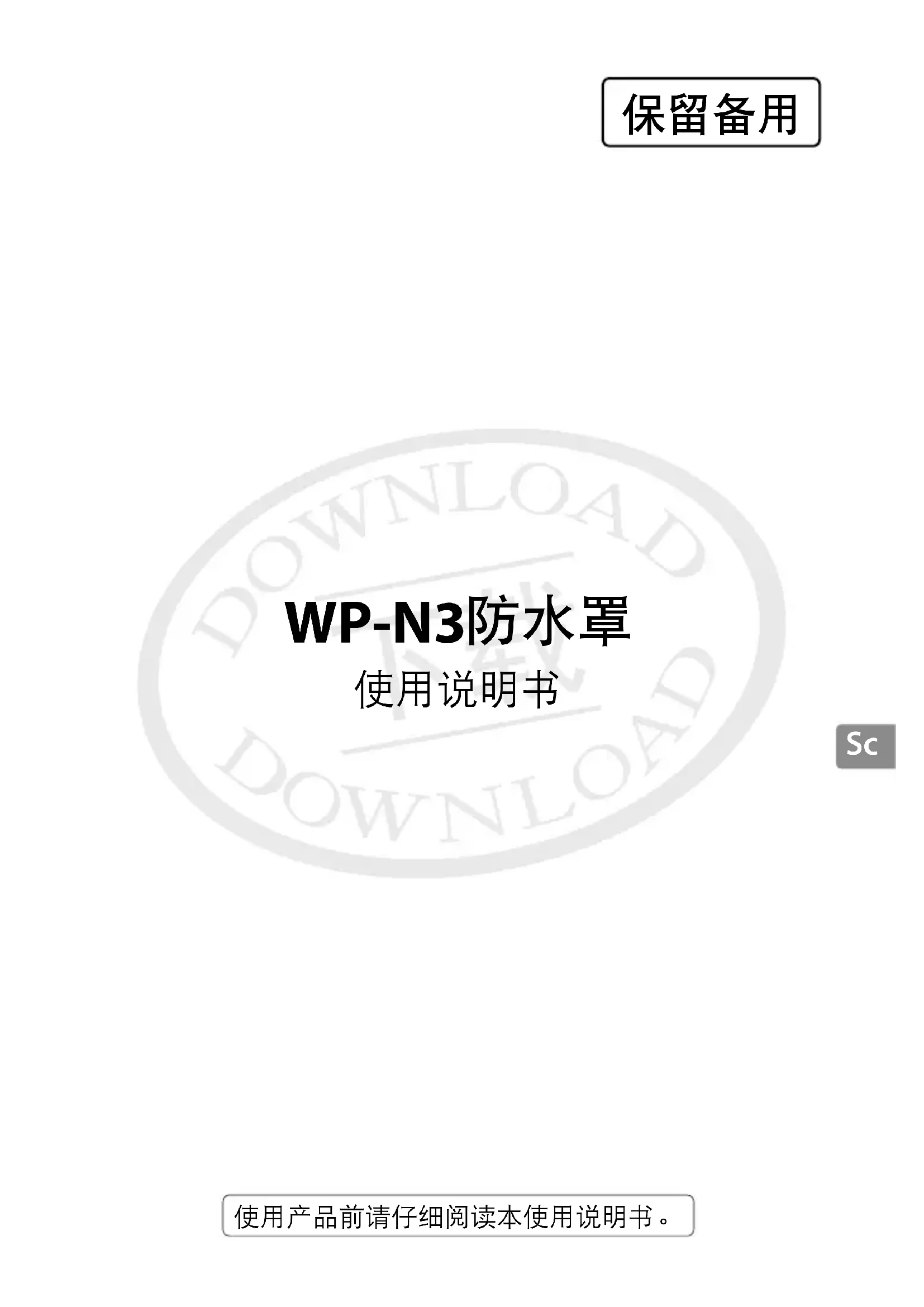 WP-N3 防水罩中可保护照相机以防止其淋 雨和淋雪,并使其可在最深 45m 的水下进行拍摄。请妥善保管 本说明书,以便本产品的所有使用者可以随时查阅,并请务必 在使用前仔细阅读本说明书和照相机说明书。