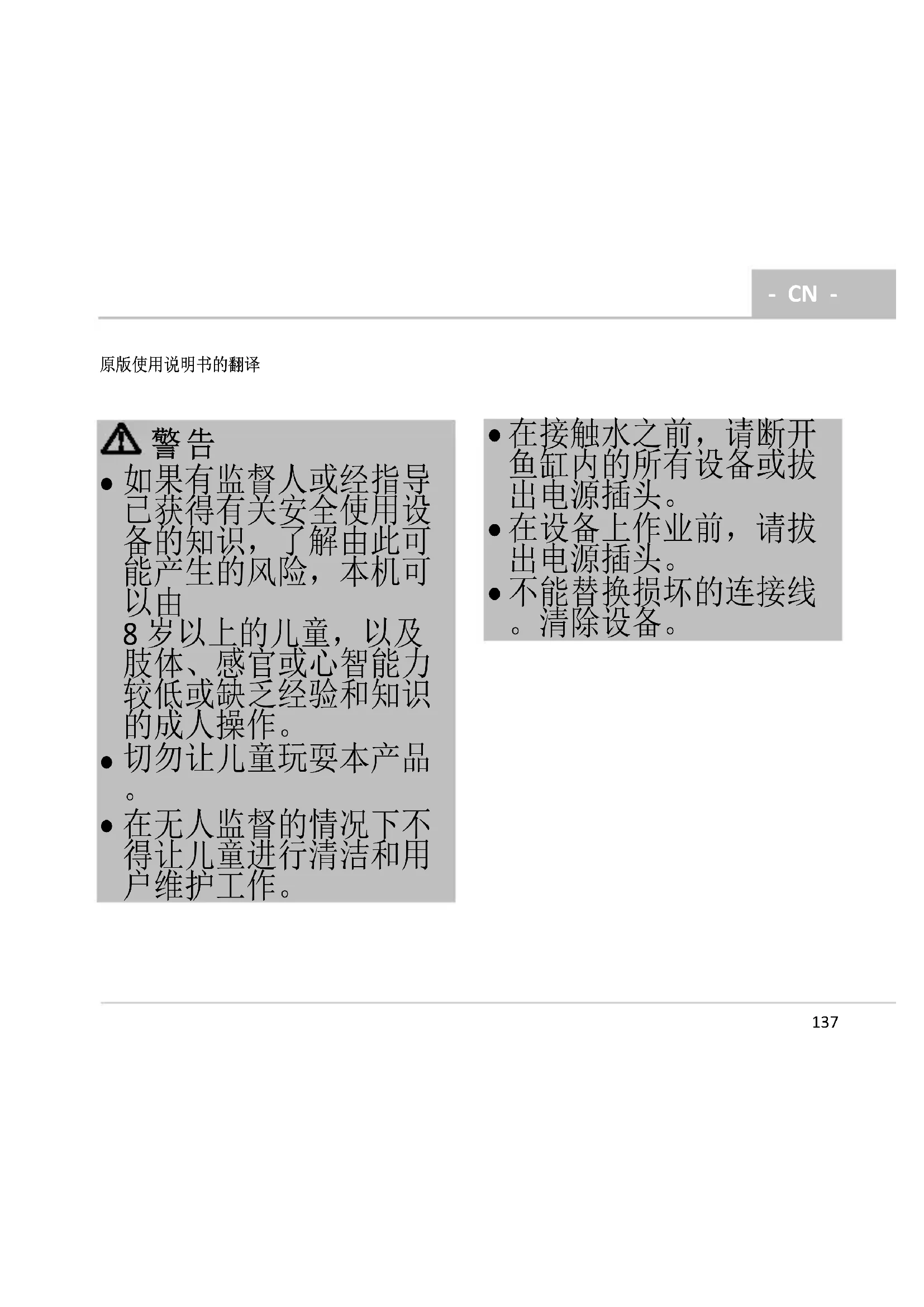 只能在设备上进行本说明书中所述的工作。如 果无法解决问题,请联系已授权的客服点,若 仍有疑问,请咨询制造商。