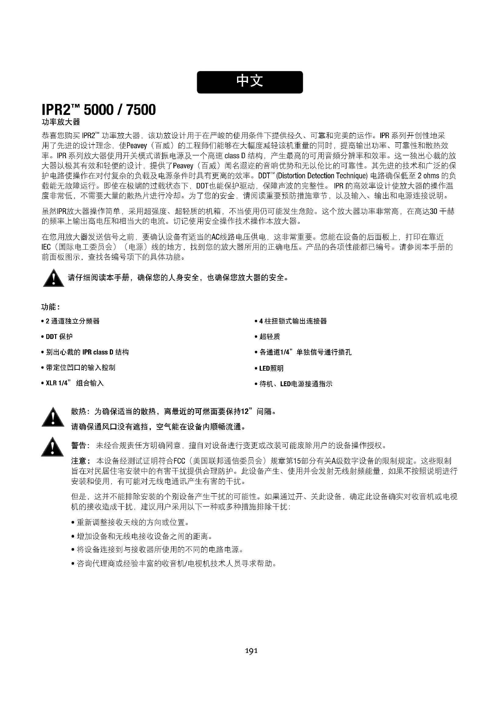 请仔细阅读本手册,确保您的人身安全,也确保您放大器的安全。 IPR2