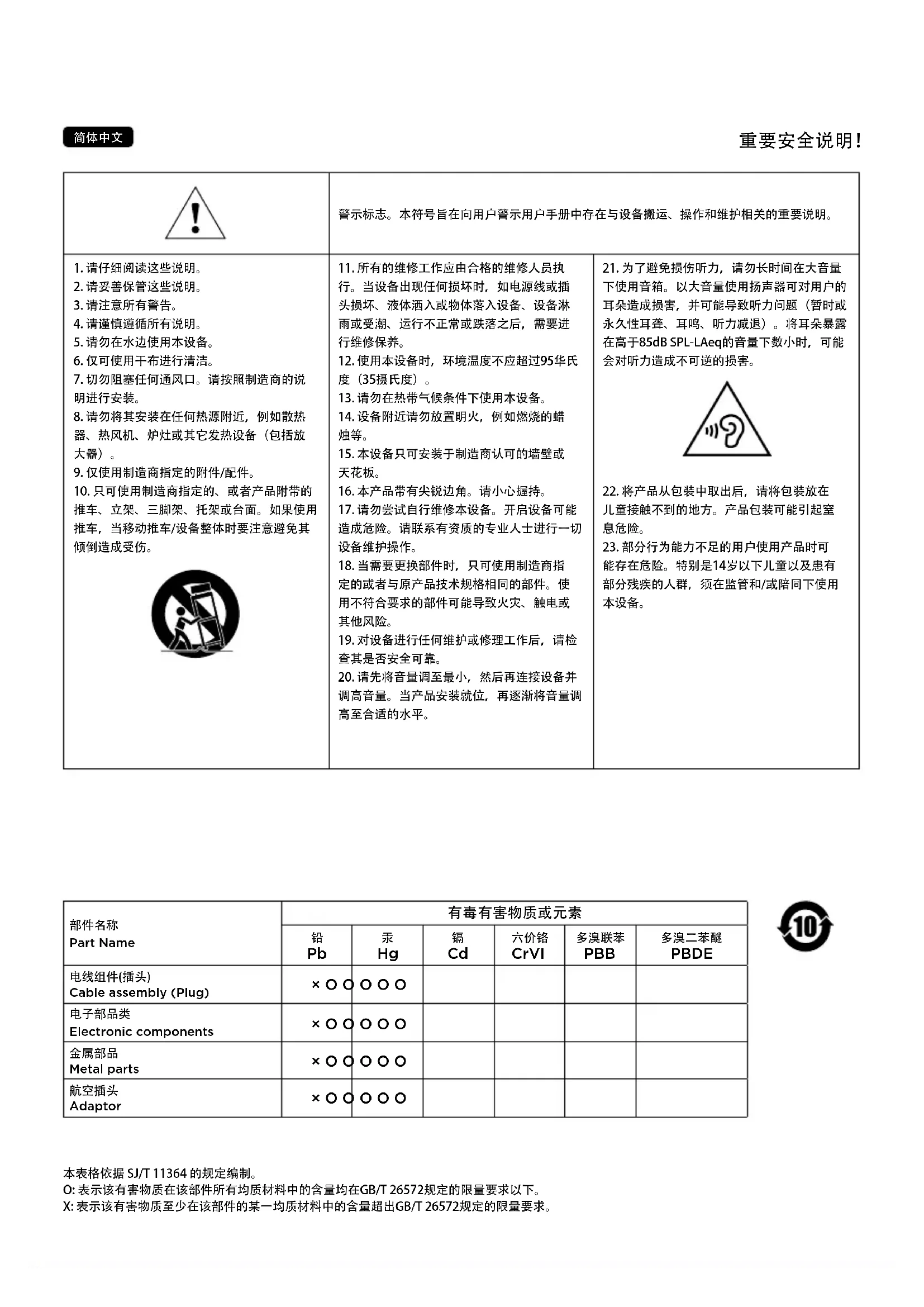 Adaptor × O O O O O 本表格依据 SJ/T 11364 的规定编制。 O: 表示该有害物质在该部件所有均质材料中的含量均在GB/T 26572规定的限量要求以下。 X: 表示该有害物质至少在该部件的某一均质材料中的含量超出GB/T 26572规定的限量要求。