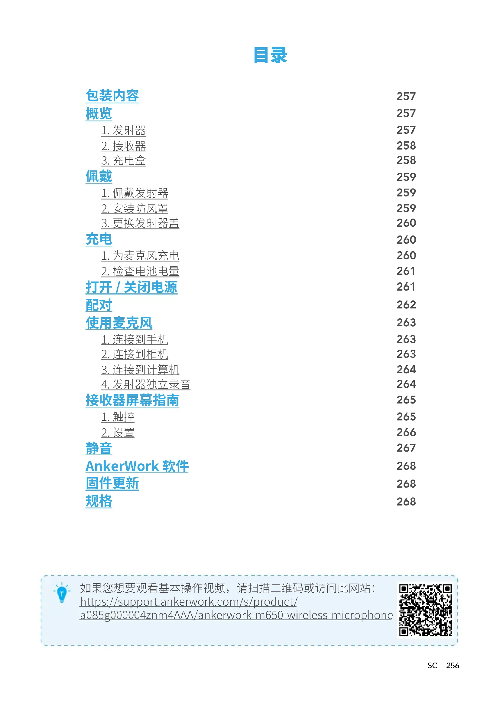 当麦克风静音时,发射器上的 LED 指示灯变为红色常亮。SC 268 AnkerWork软件 下载 AnkerWork 软件以导出音频文件、调整设置、更新固件以及进行其他操作。