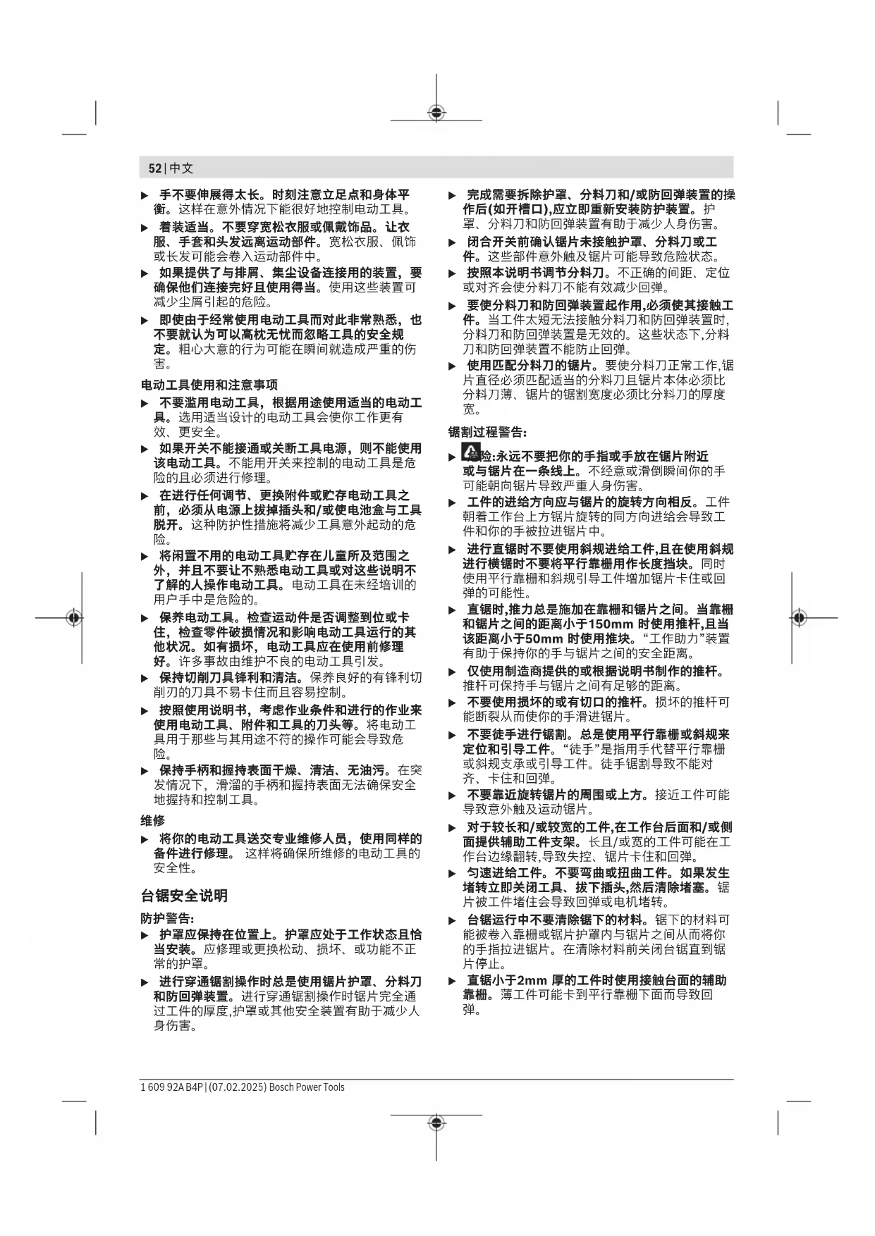 – 關閉電動工具並等待鋸片完全停止轉動。 Bosch Power Tools 1 609 92A B4P | (07.02.2025)70 | 繁體中文