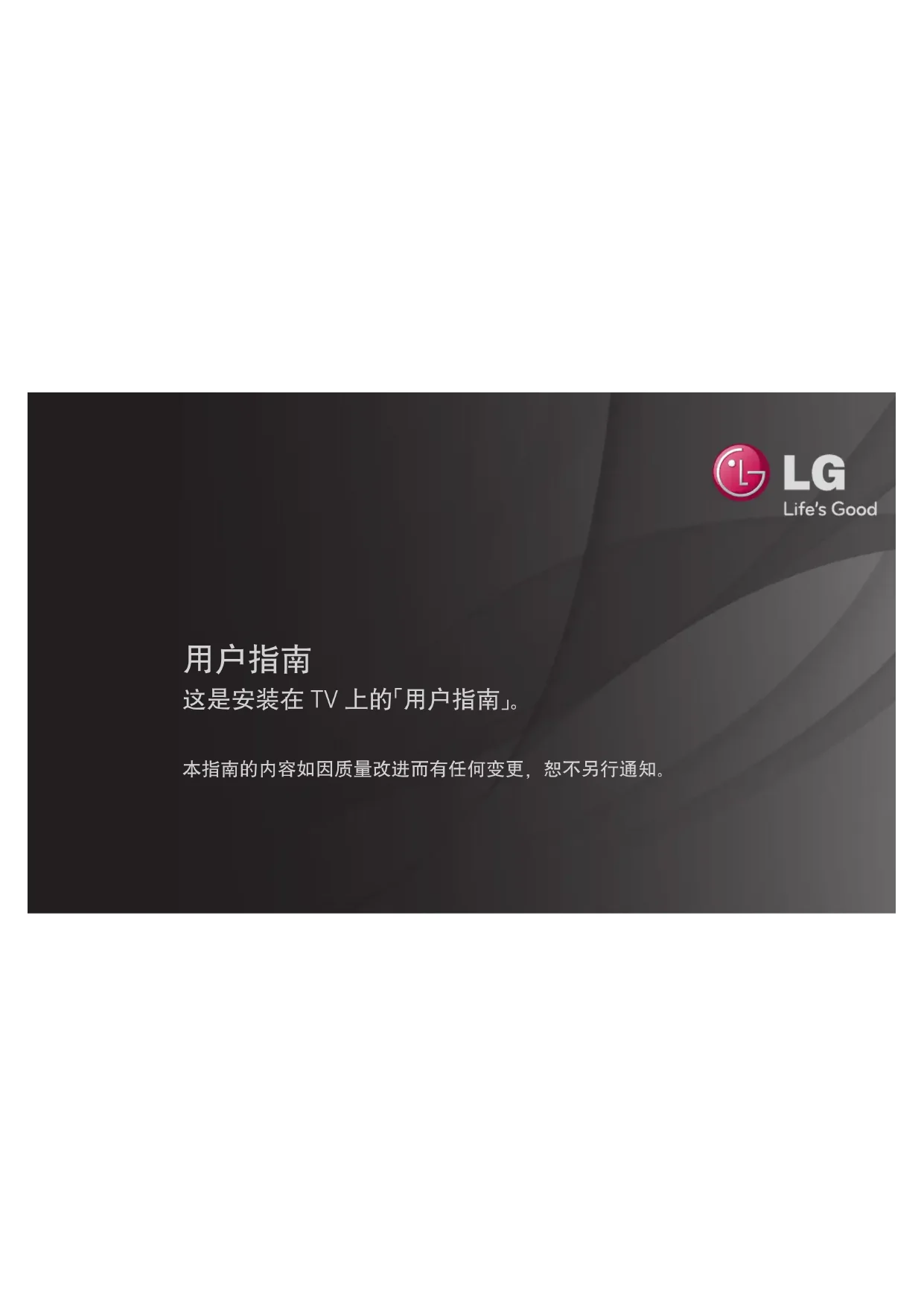 这是安装在 TV 上的「用户指南」。 本指南的内容如因质量改进而有任何变更,恕不另行通知。GP4 cmn