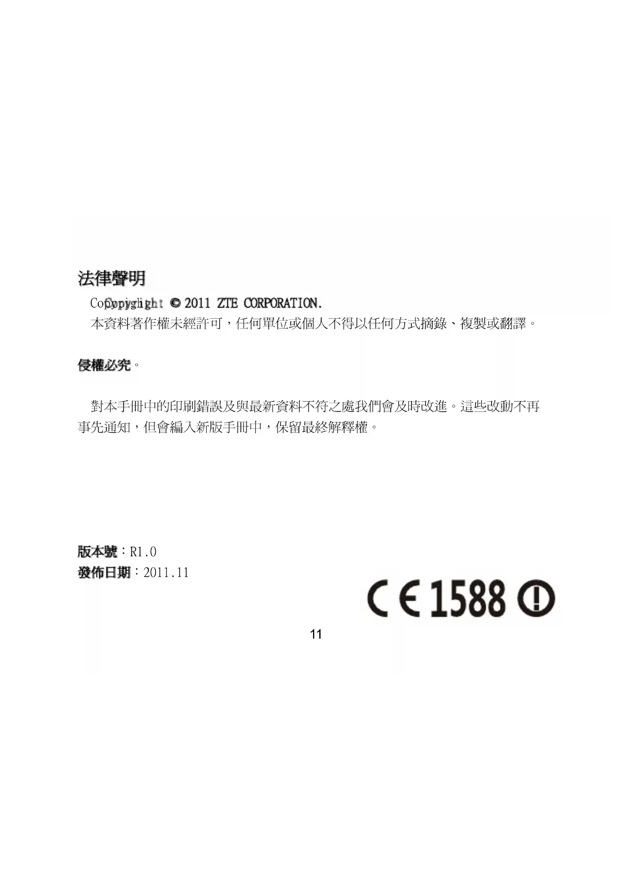 2011 ZTE CORPORATION. 本資料著作權未經許可,任何單位或個人不得以任何方式摘錄、複製或翻譯。