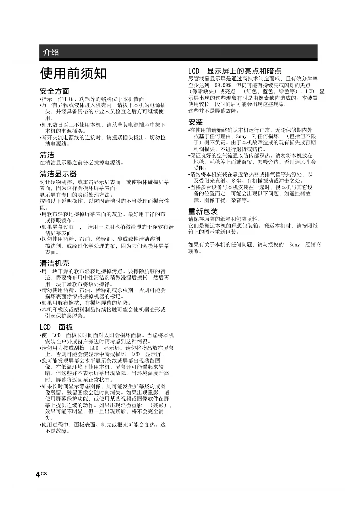 用户手册 FWDS47H1 SONY