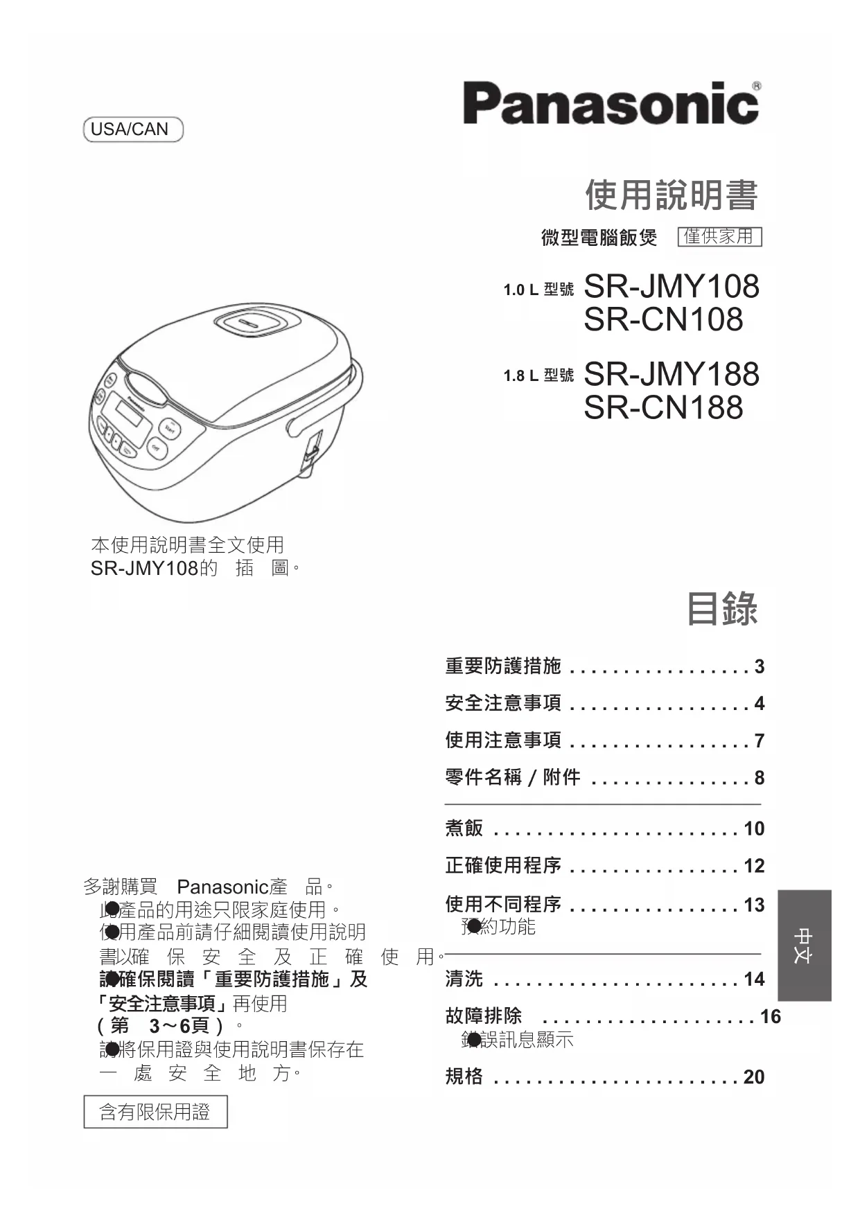 SR-JMY188 SR-CN188 多謝購買 Panasonic產 品。