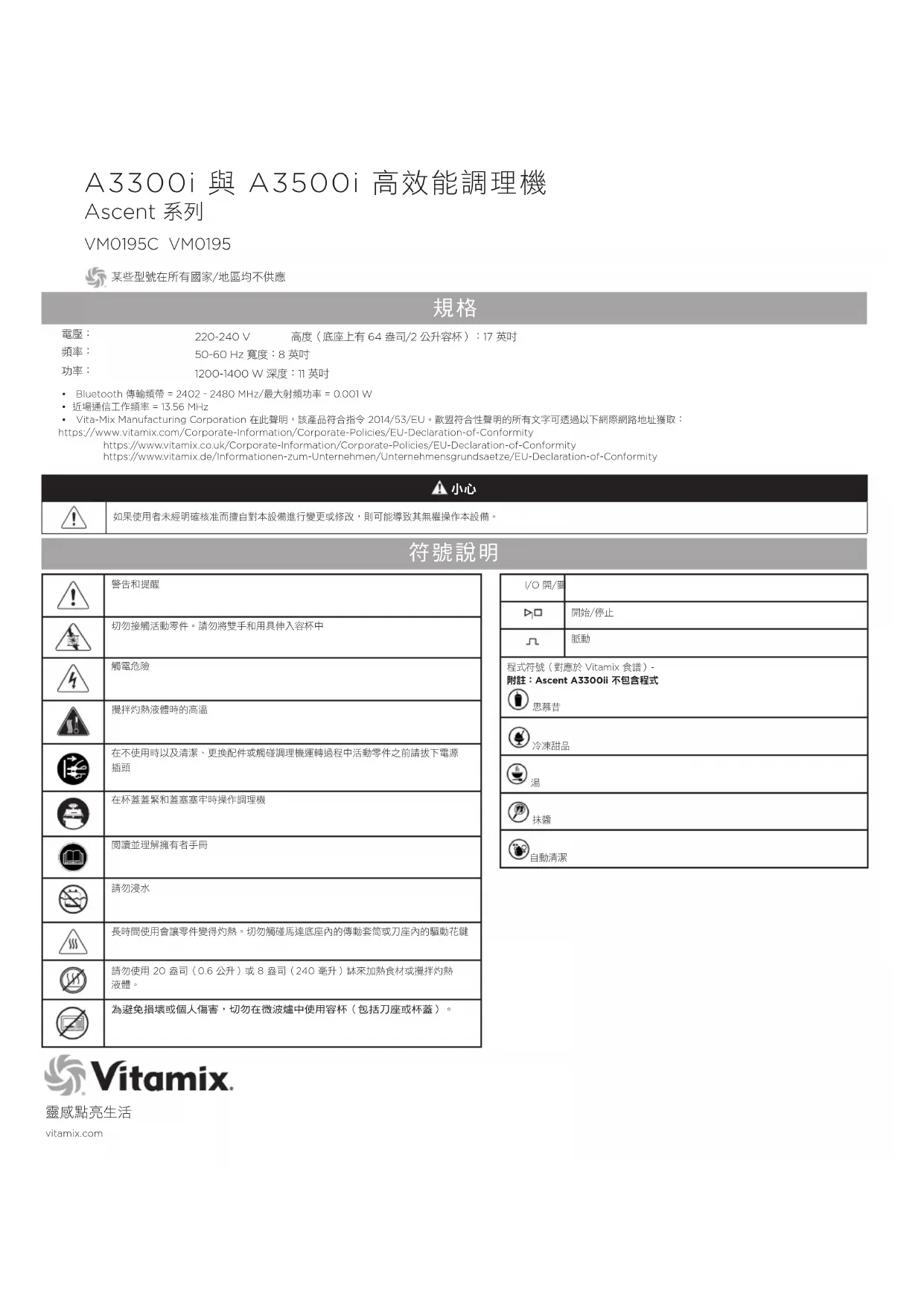 免费查找设备手册 Ascent A3300i Vitamix PDF格式.