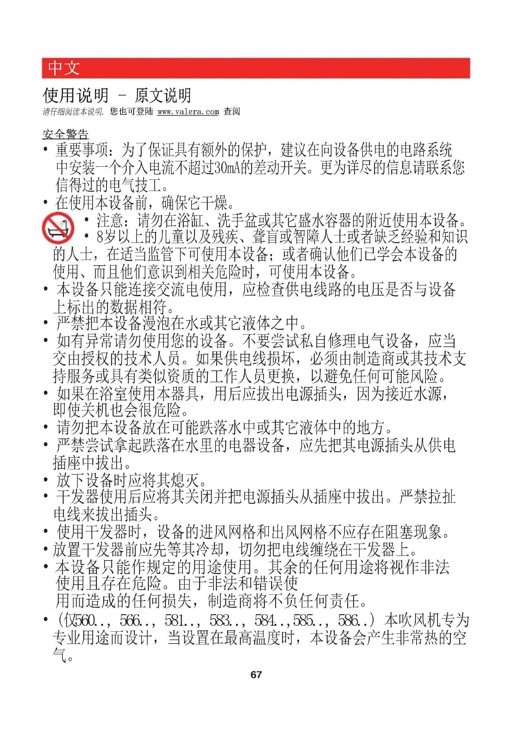 本干发器符合电器设备的安全标准。 本干发器备有一个安全恒溫器,在设备过热时, 会自动将设备停止运作。经过一段短暂的时间 后,设备将会恢复运行。每次使用前,应先检查 干发器的进风网格和出风网格是否清洁干净。 本电器符合欧洲标准2014/30/EU、2014/35/EU、 2011/65/EC, 2009/125/EC、(欧盟)第1275/2008 号法令以及国 标 GB4706.1-2005, GB4706.15- 2008, GB434 3.1-2009, GB17625.1-2012。