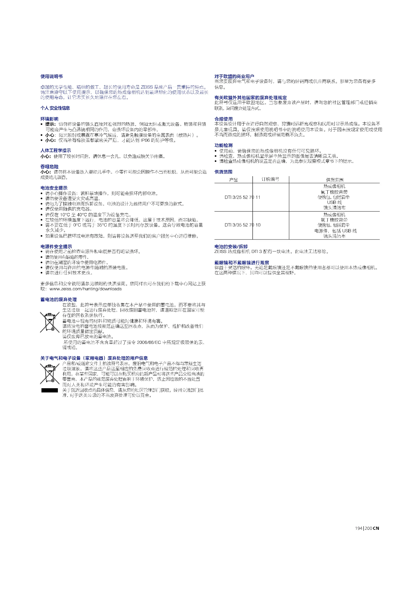 使用 DTI 3 时会对与个人相关的数据进行处理。 有关我们的数据保护提示以及个人相关数据的处理提示信息,可在我们的下载中 心找到:www.zeiss.com/hunting/manuals