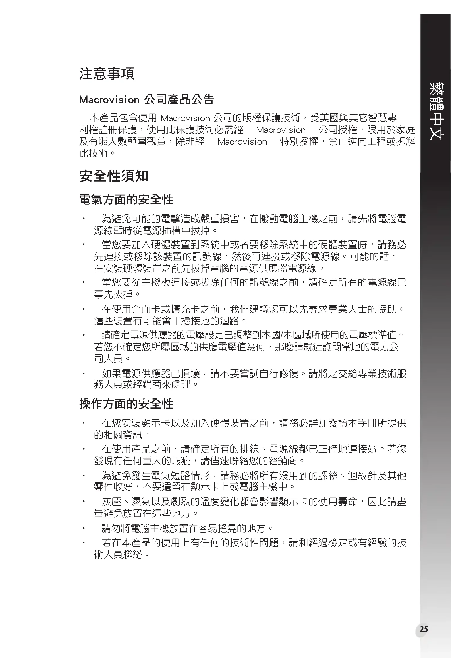 - 在您安裝顯示卡以及加入硬體裝置之前,請務必詳加閱讀本手冊所提供