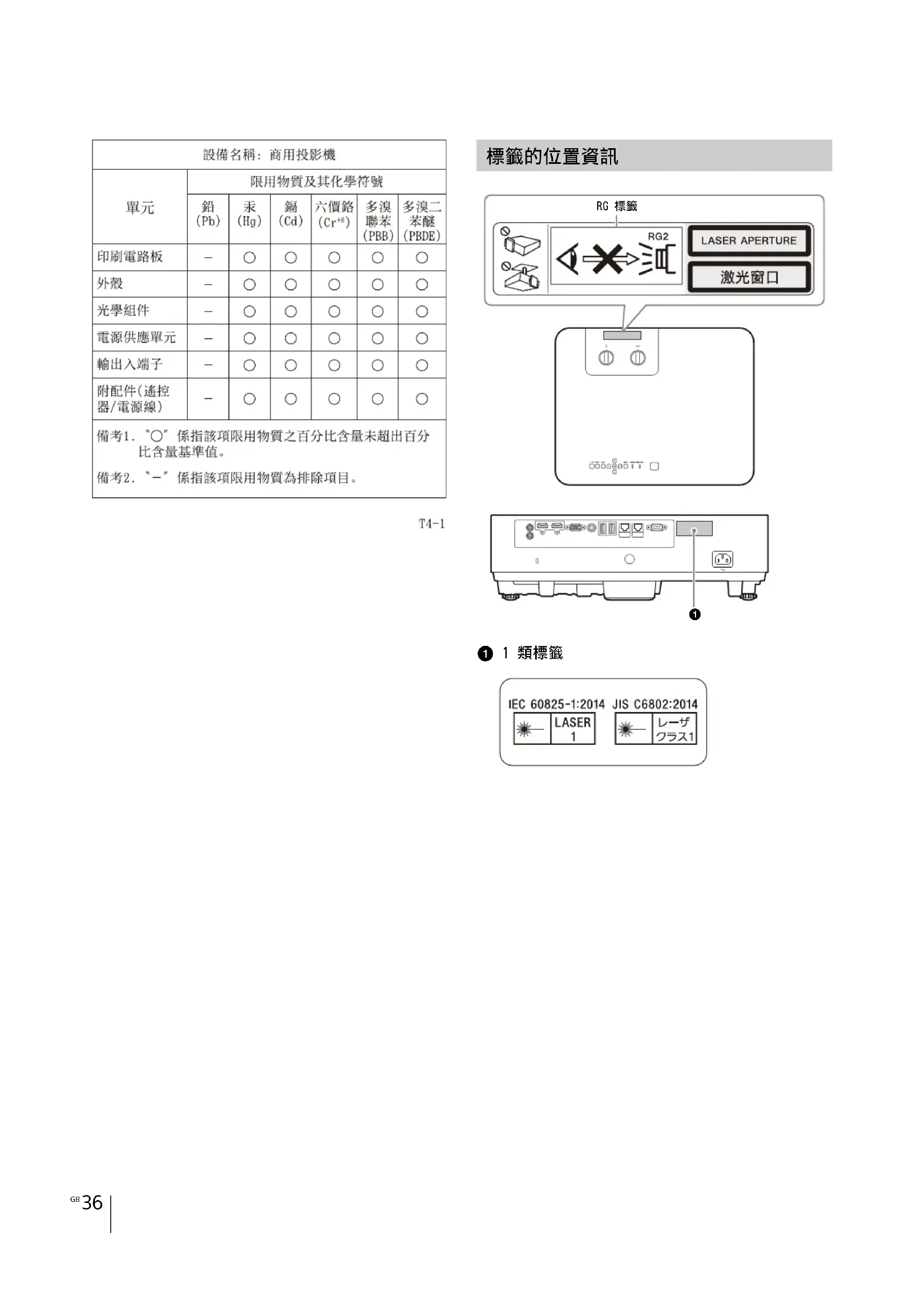 若要安全使用投影機,請要求您購買投影機的商店 或專業安裝人員進行定期檢查。 安裝本機時,請在本機與任何牆壁等之間留出空