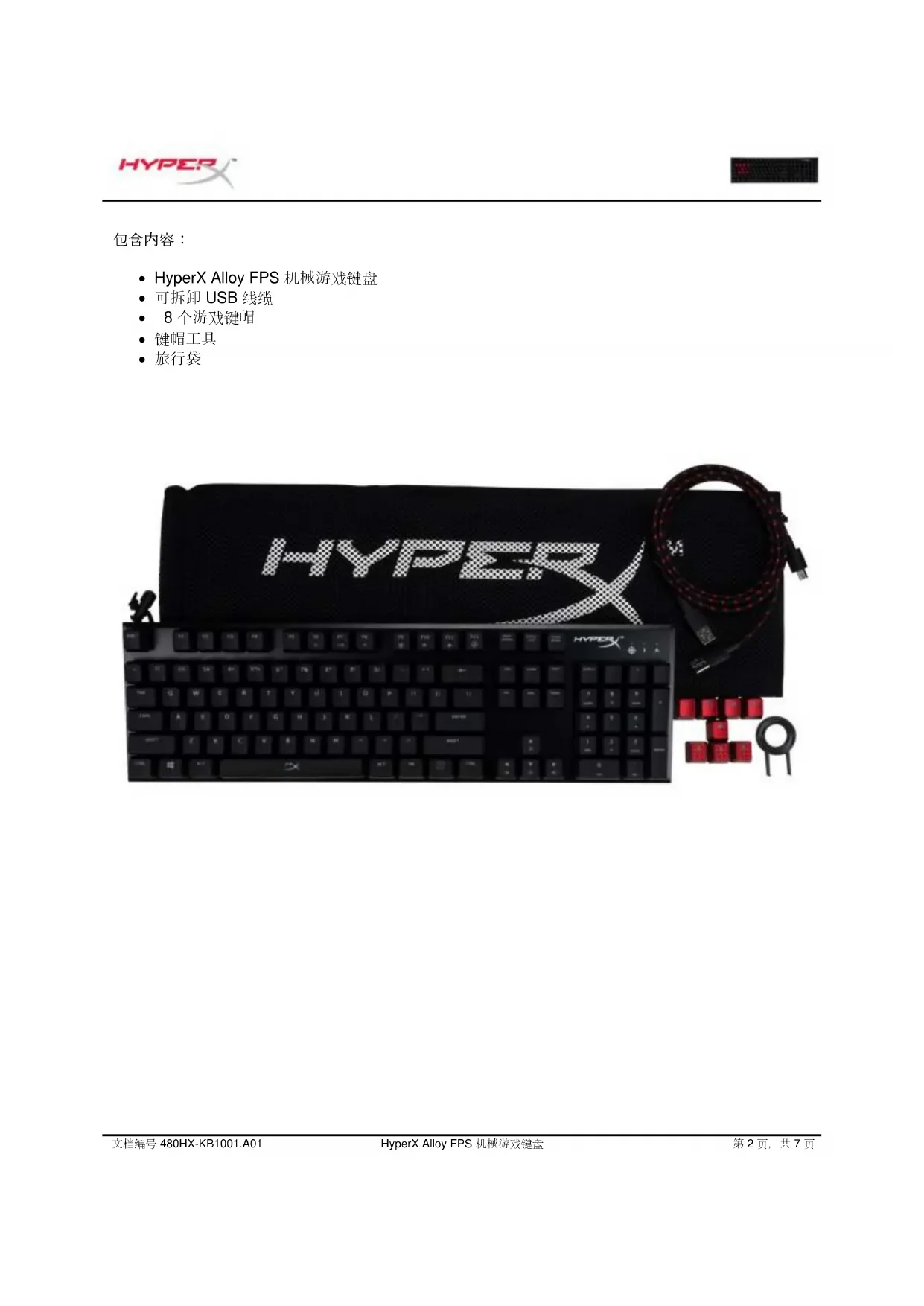 旅行袋文档编号 480HX-KB1001.A01 HyperX Alloy FPS 机械游戏键盘 第 3 页,共 7 页