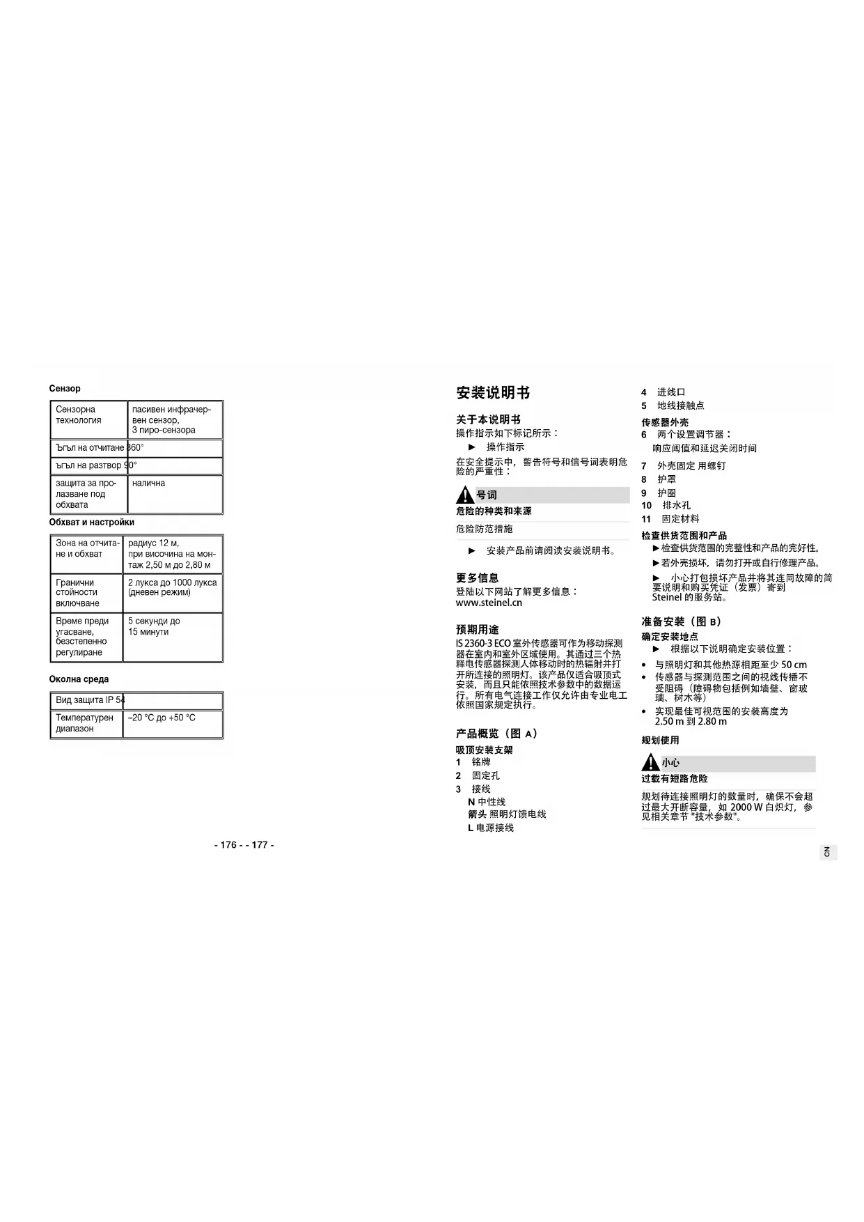 下载您的设备说明 运动探测器 免费PDF格式!查找您的手册 IS 2360 - STEINEL 并重新掌握您的电子设备。本页发布了使用您的设备所需的所有文档。 IS 2360 品牌 STEINEL.