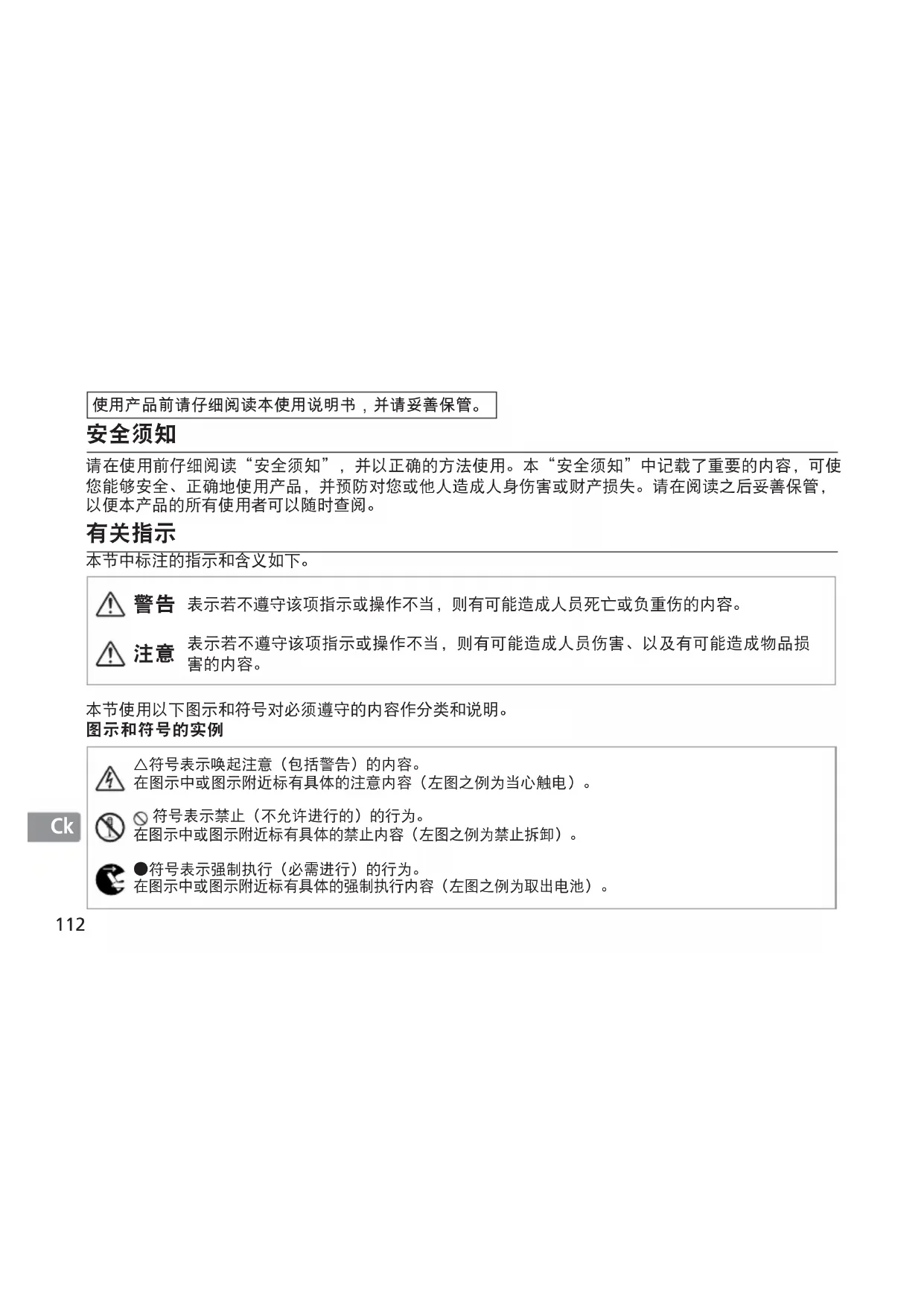 请在使用前仔细阅读“安全须知”,并以正确的方法使用。本“安全须知”中记载了重要的内容,可使 您能够安全、正确地使用产品,并预防对您或他人造成人身伤害或财产损失。请在阅读之后妥善保管, 以便本产品的所有使用者可以随时查阅。