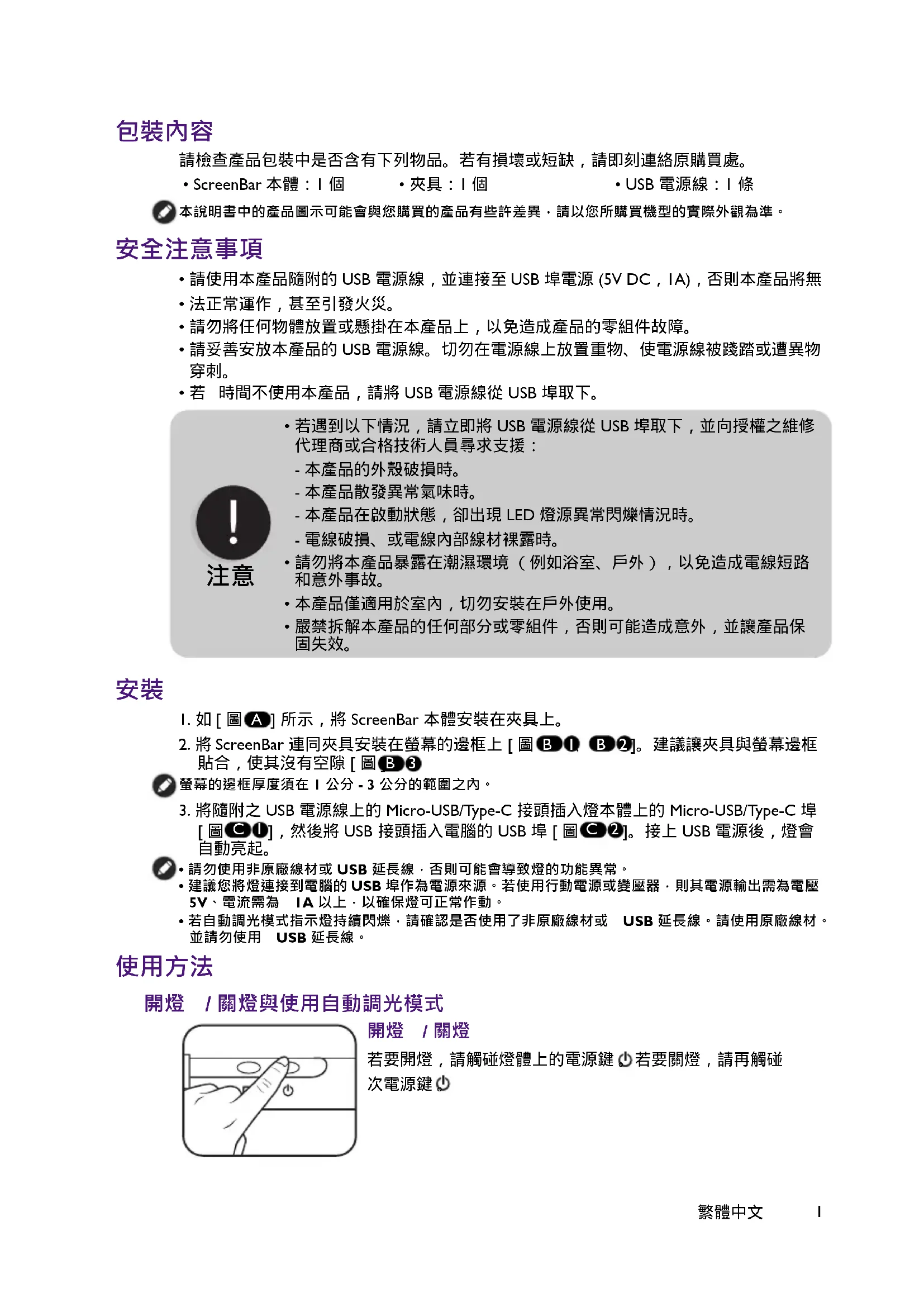 用户手册 ScreenBar eReading Lamp AR17 BENQ