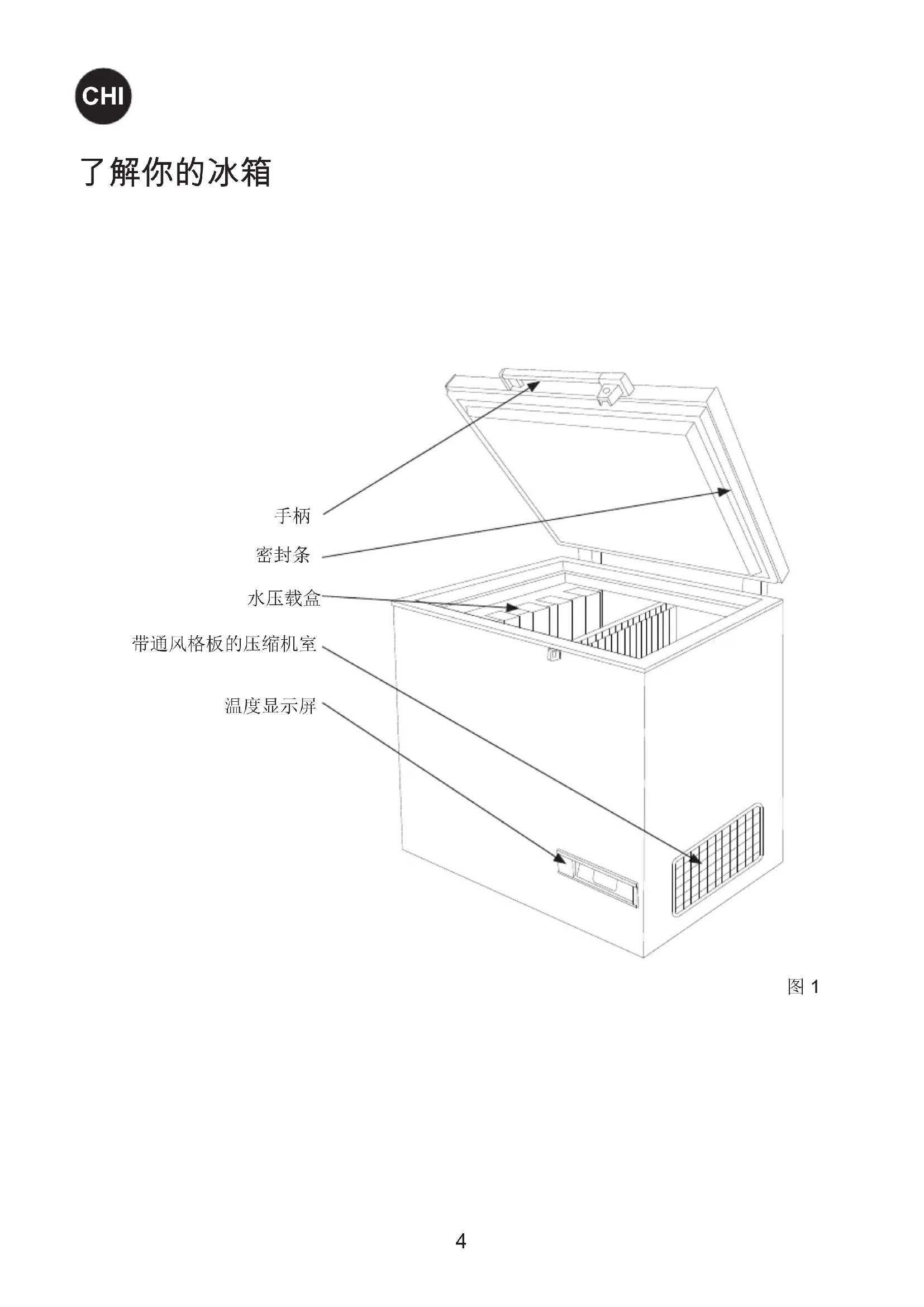 如果安装在有其它冰箱/冰柜的房间里,应确 保设备之间的距离最少200毫米。 设备的基座和地面之间应有最少30mm的间隙。 注意: 格板应能自由接近,无阻碍。 图 2 图 26 CHI