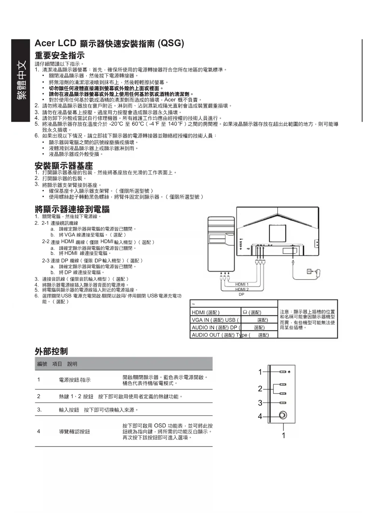 Acer 產品的手冊和其他文件。简体中文 Acer 液晶显示器快速入门指南 (QSG)