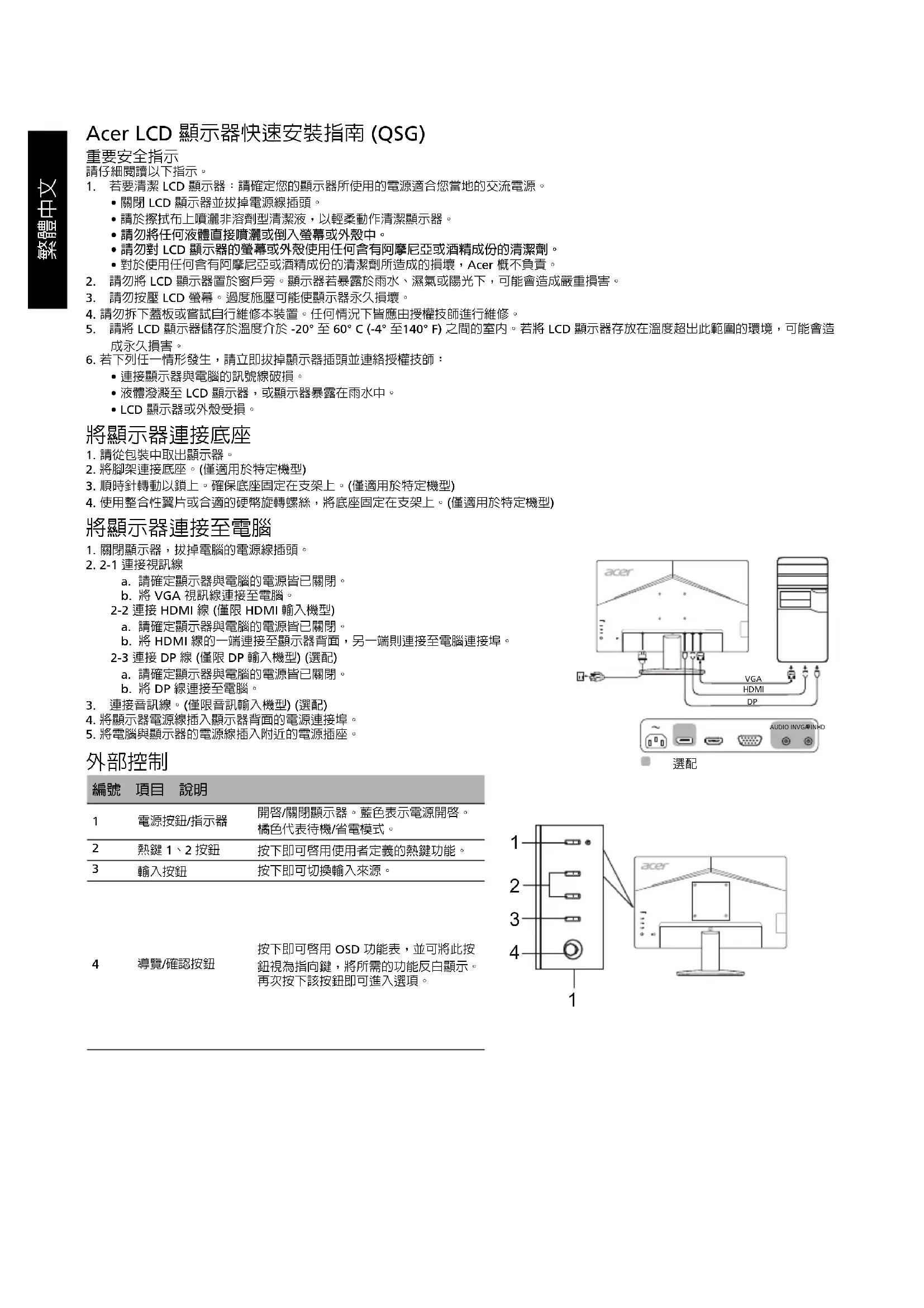 規格視機型及/或地區而定。简体中文 Acer 液晶显示器快速入门指南 (QSG)