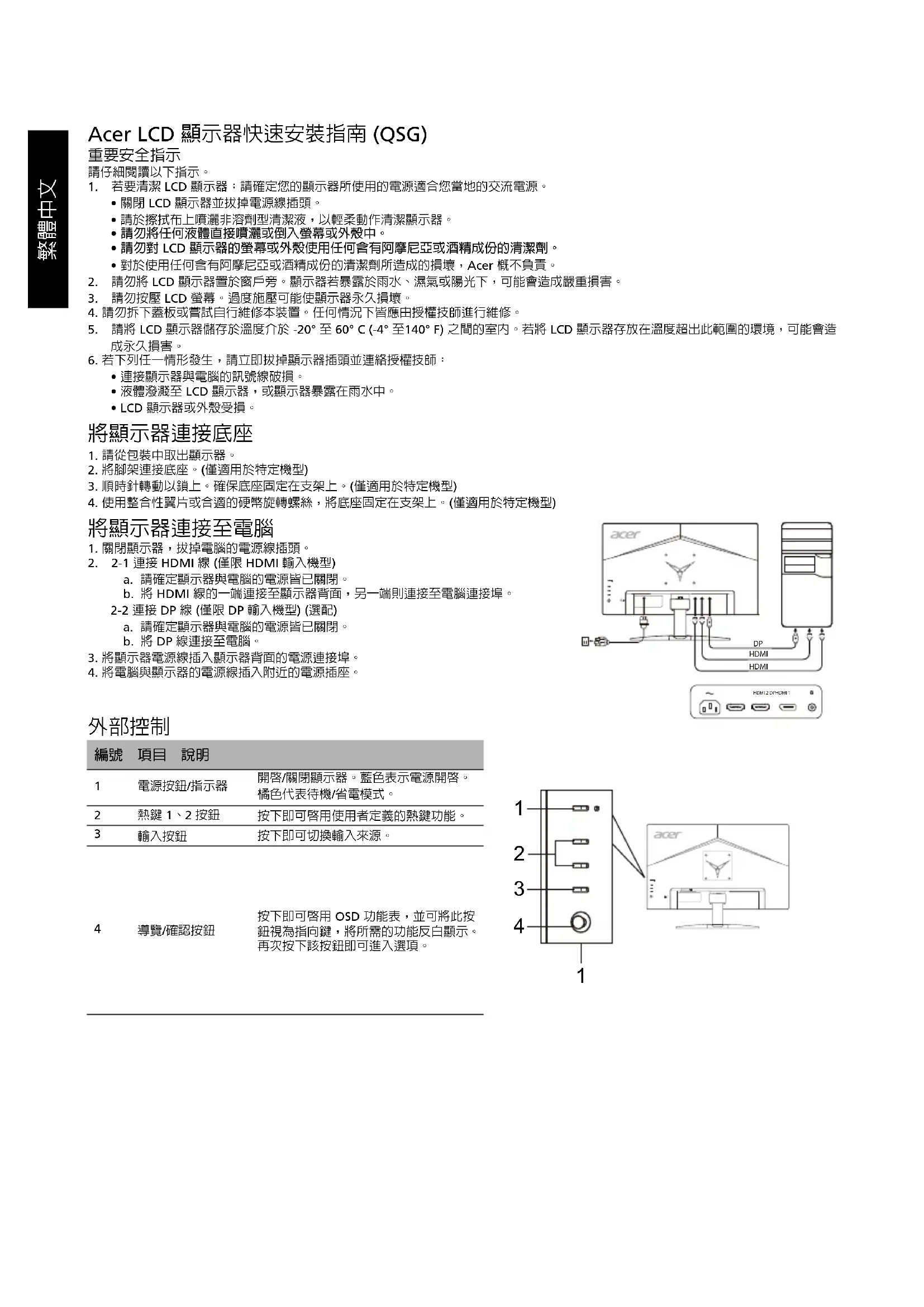 規格視機型及/或地區而定。简体中文 Acer 液晶显示器快速入门指南 (QSG)