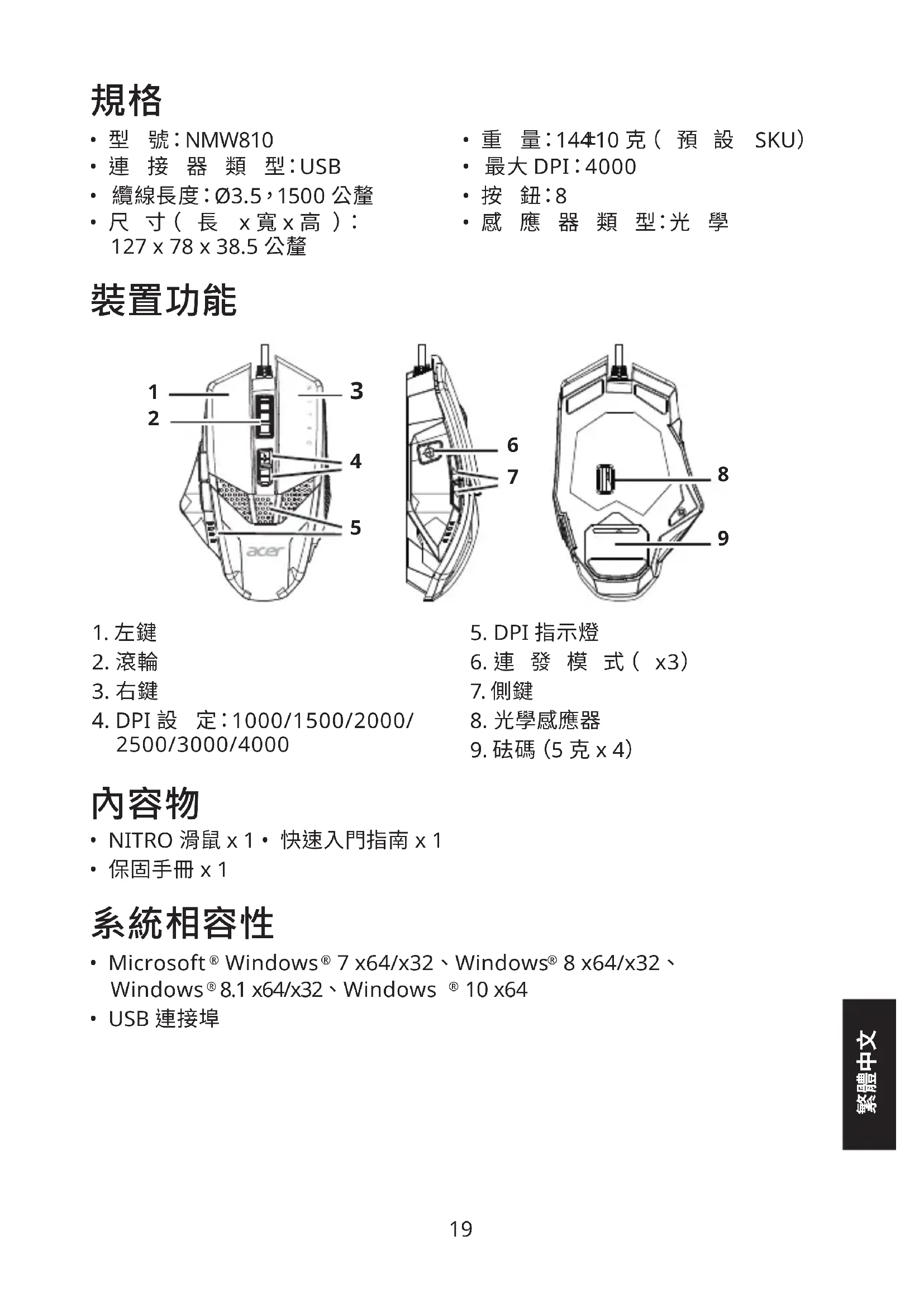 有 关 质 保 相 关 信 息,请 访 问 www.acer.com 。Product name / Наименование / 產品名稱 / 产品名称: NITRO Mouse /