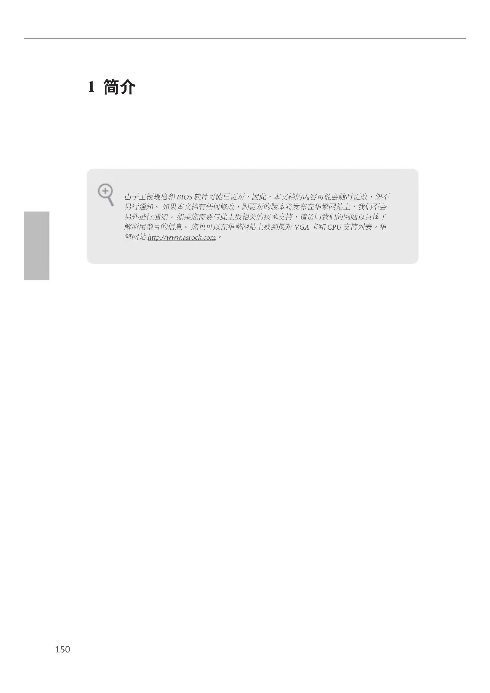 - 1 x 螺丝(供 M.2_SSD (NGFF)插座 3使用) 由于主板规格和 BIOS 软件可能已更新,因此,本文档的内容可能会随时更改,恕不另行通知。 如果本文档有任何修改,则更新的版本将发布在华擎网站上,我们不会另外进行通知。 如果您需要与此主板相关的技术支持,请访问我们的网站以具体了解所用型号的信息。 您也可以在华擎网站上找到最新 VGA 卡和 CPU 支持列表。华擎网站 http://www.asrock.com。151