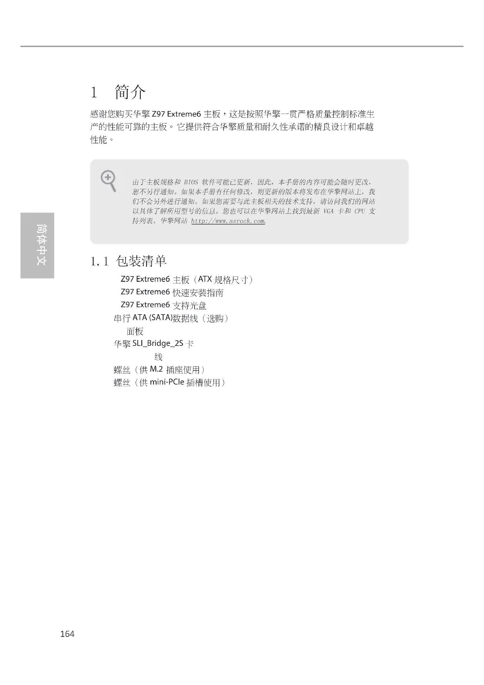 由于主板规格和 BIOS 软件可能已更新,因此,本手册的内容可能会随时更改,恕不另行通知。如果本手册有任何修改,则更新的版本将发布在华擎网站上,我们不会另外进行通知。如果您需要与此主板相关的技术支持,请访问我们的网站以具体了解所用型号的信息。您也可以在华擎网站上找到最新 VGA 卡和 CPU 支持列表。华擎网站 http://www.asrock.com.165 Z97 Extreme6