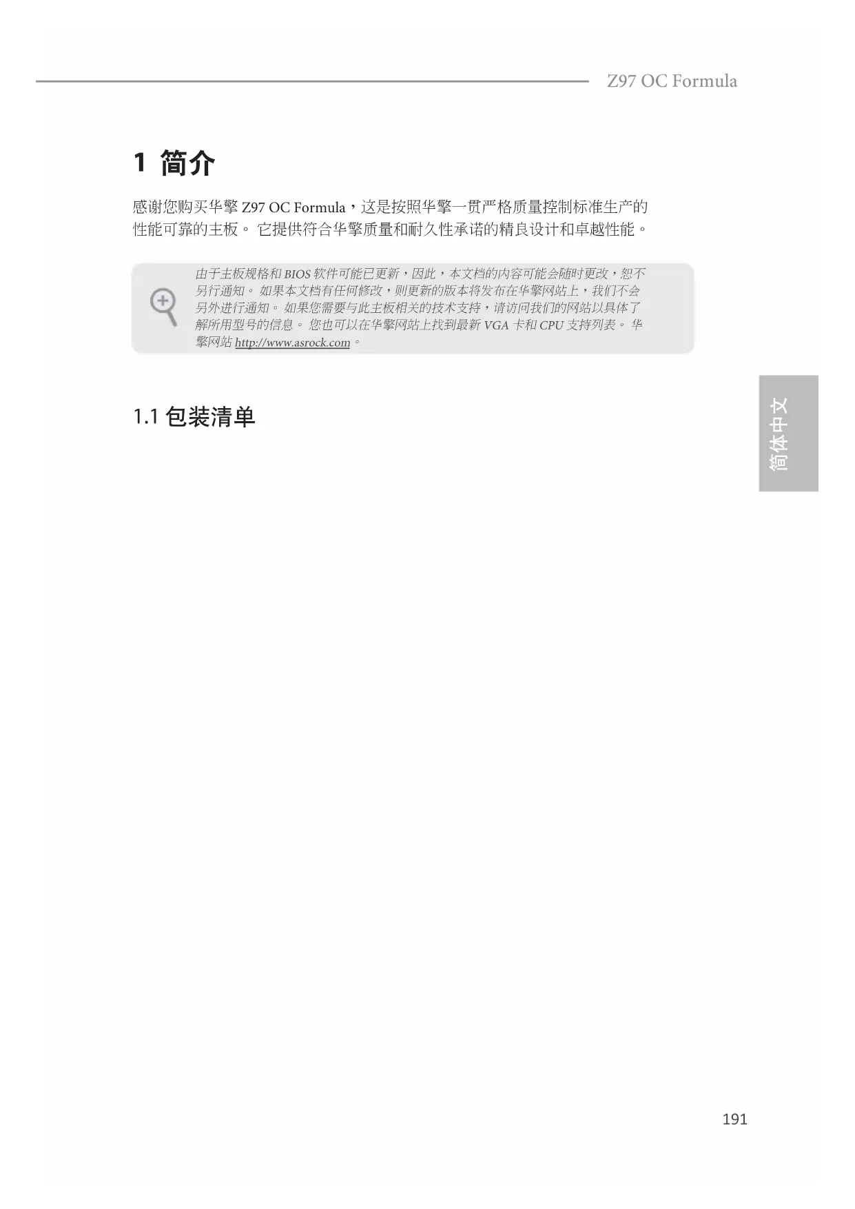 Z97 OC Formula 1 简介 感谢您购买华擎 Z97 OC Formula,这是按照华擎一贯严格质量控制标准生产的 性能可靠的主板。 它提供符合华擎质量和耐久性承诺的精良设计和卓越性能。