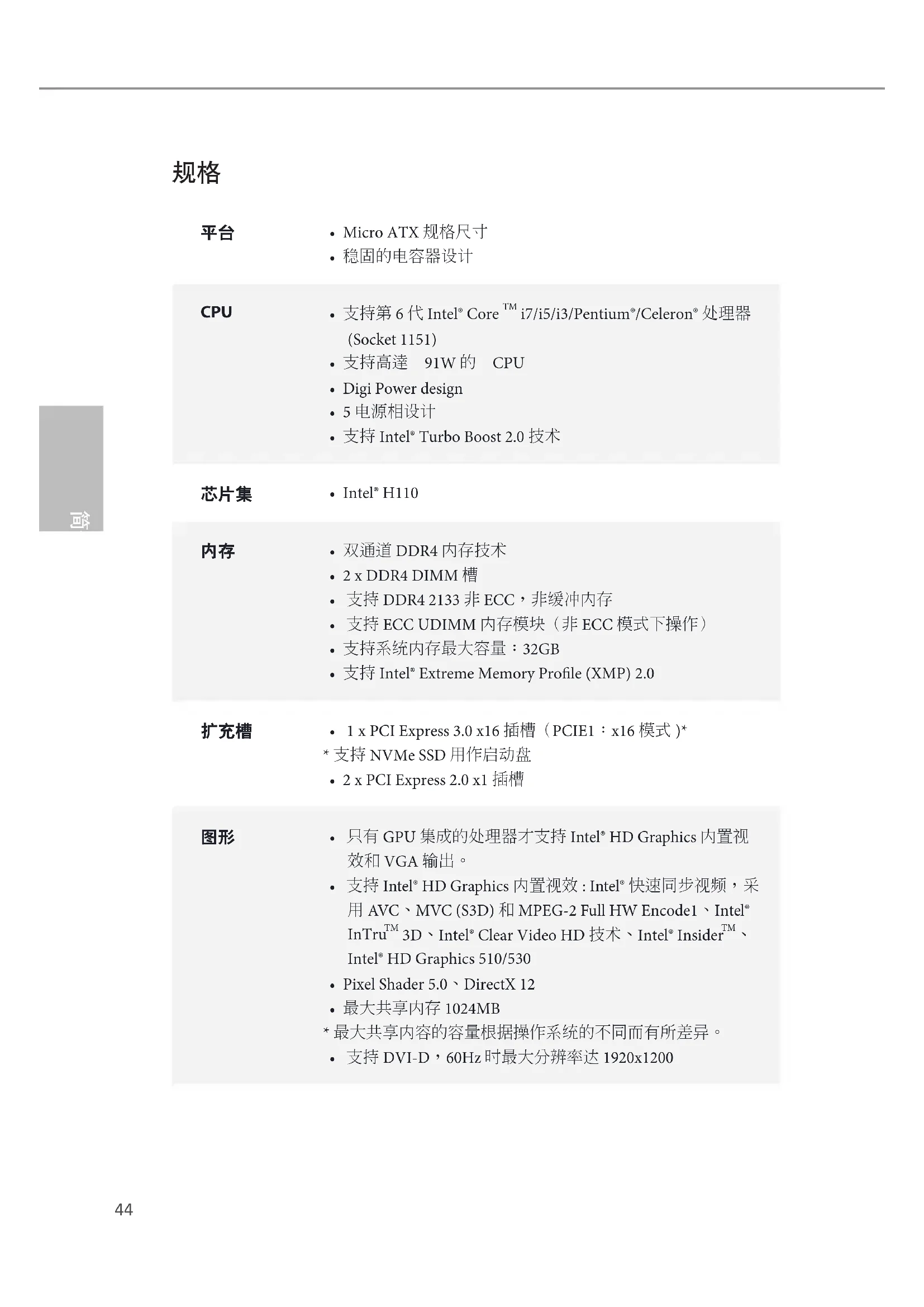 - 只有 GPU 集成的处理器才支持 Intel® HD Graphics 内置视 效和 VGA 输出。
