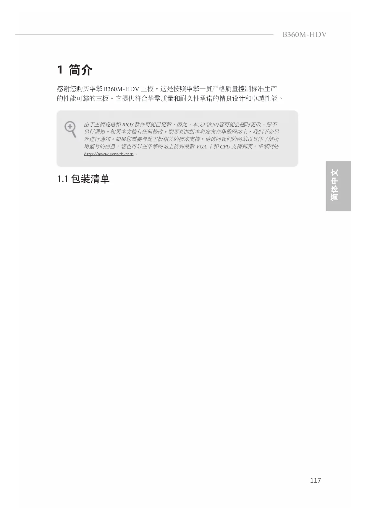 1 简介 感谢您购买华擎 B360M-HDV 主板,这是按照华擎一贯严格质量控制标准生产 的性能可靠的主板。它提供符合华擎质量和耐久性承诺的精良设计和卓越性能。