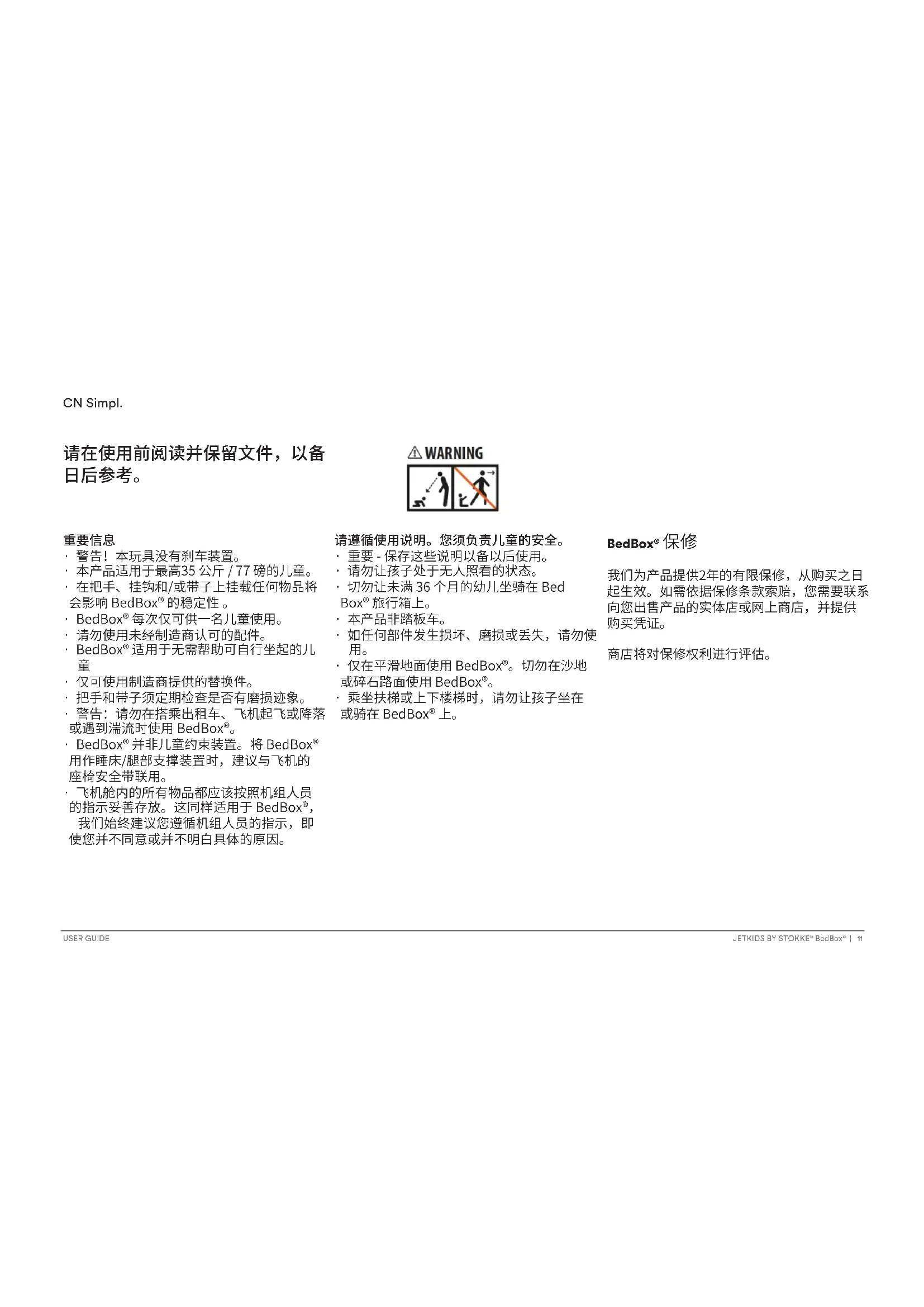 - 乘坐扶梯或上下楼梯时,请勿让孩子坐在 或骑在 BedBox® 上。USER GUIDE | 12JETKIDS BY STOKKE® BedBox® CN Trad. 請在使用前閱讀並保留文件,以備