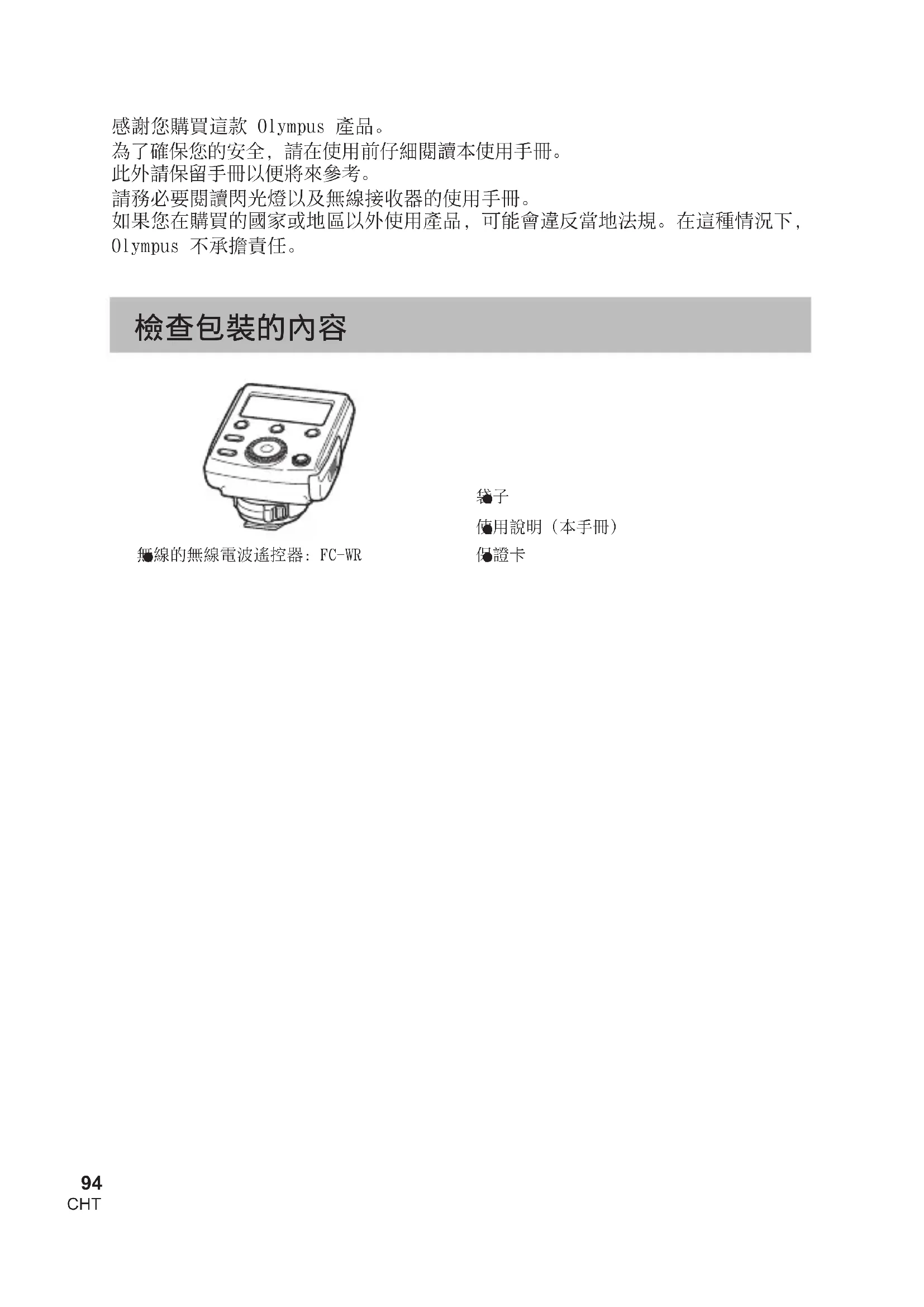 如果您在購買的地區以外使⽤產品,可能會違反當地的無線電波法規。在這種 情況下,Olympus 不承擔責任。