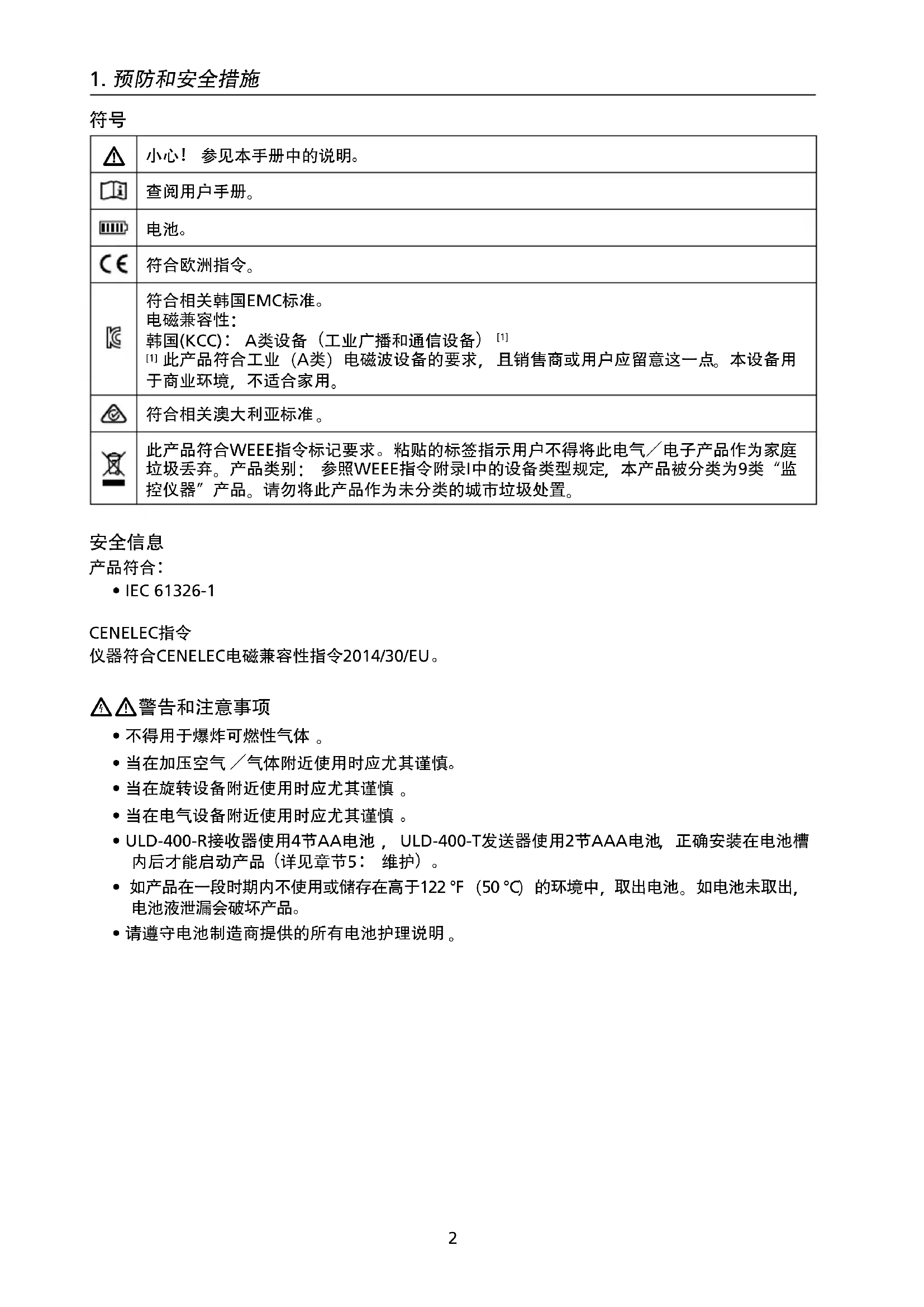 用户手册 ULD400T Amprobe