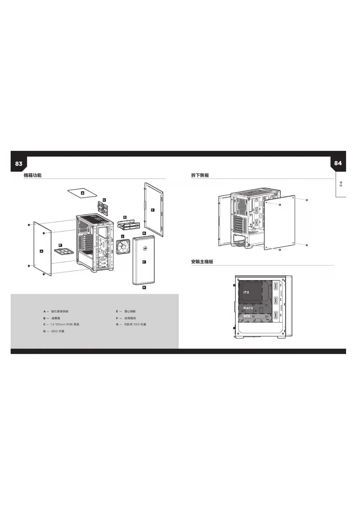 安裝 SSD 安裝 PSU 安裝 PCI-e 卡安裝 HDDUSB 3.0 HD AUDIO RESET SW POWER LED + POWER LED – POWER SW 12V 12V 主板 RGB 接頭