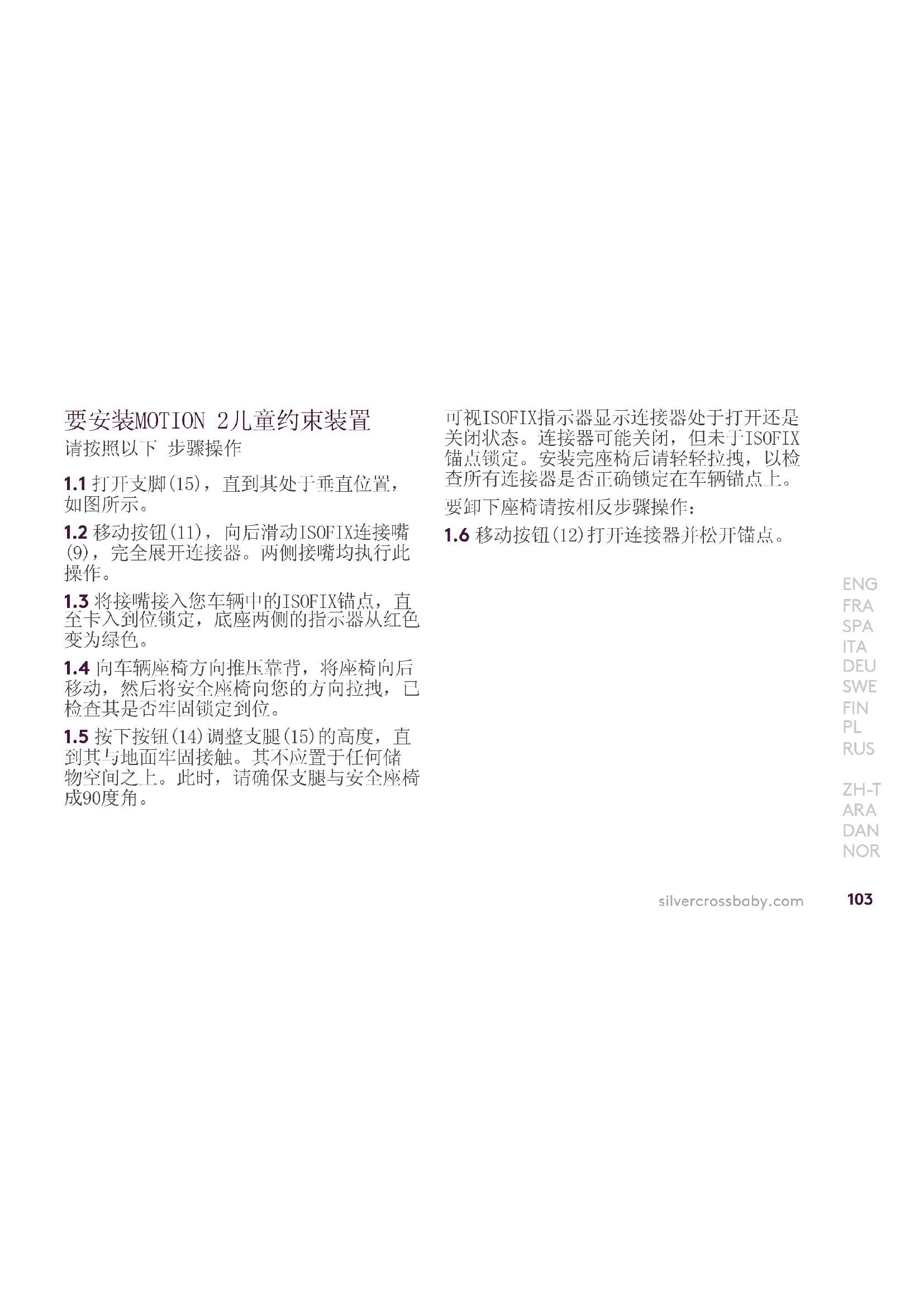 系统,在安装约束系统时请仔细阅读汽车制 造商手册中有关ISOFIX固定点的说明。silvercrossbaby.com 要安裝MOTION 2兒童約束裝置,請