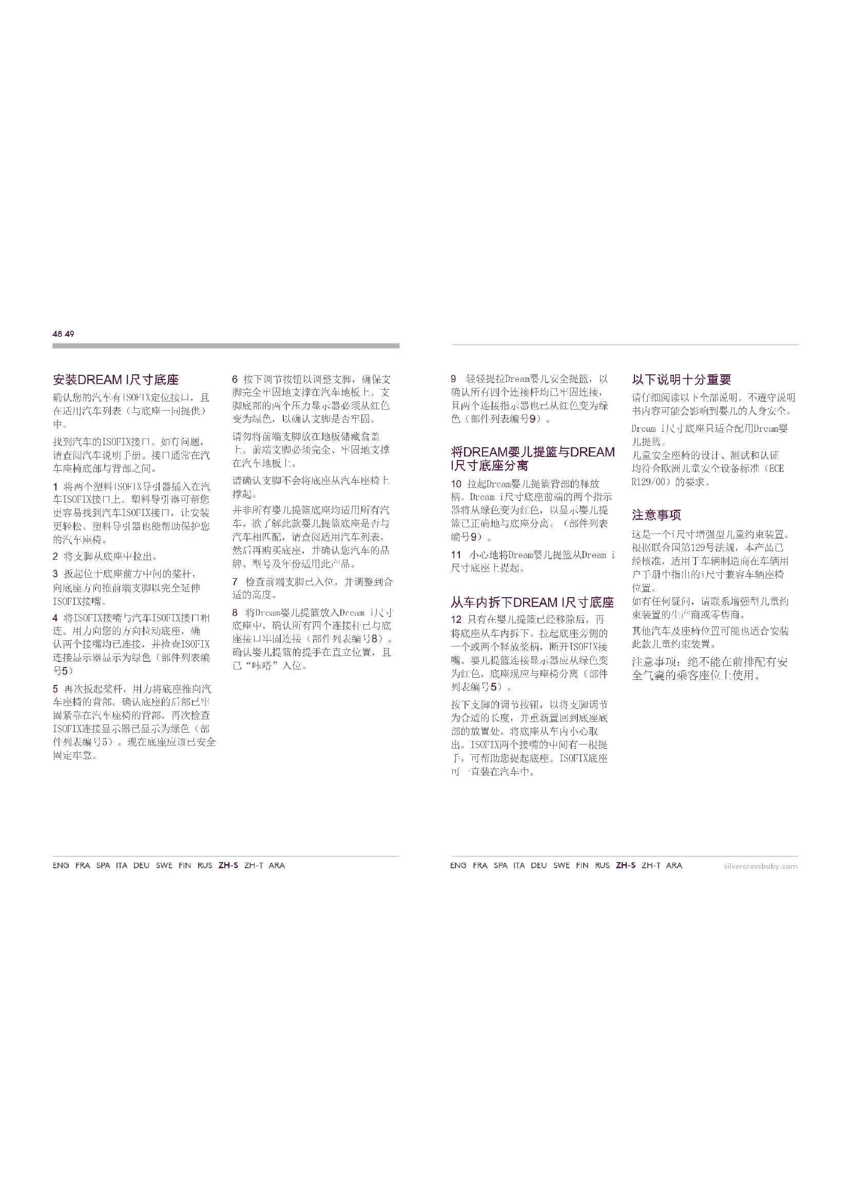 请仔细阅读以下全部说明。不遵守说明 书内容可能会影响到婴儿的人身安全。 Dreami尺寸底座只适合配用Dream婴
