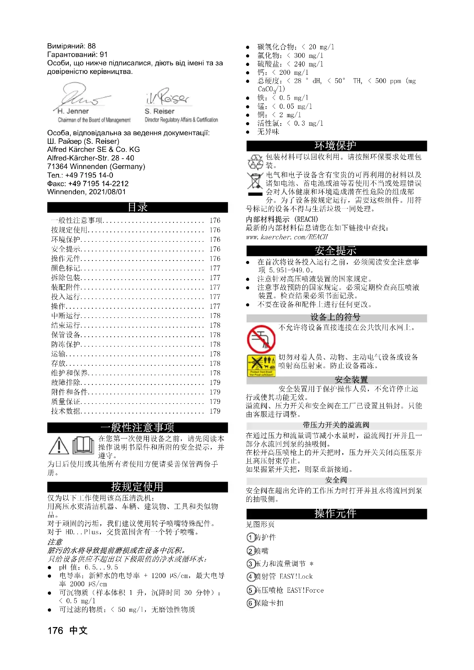 电气和电子设备含有宝贵的可再利用的材料以及 诸如电池、蓄电池或油等若使用不当或处理错误 会对人体健康和环境造成潜在性危险的组成部 分。为了设备按规定运行,需要这些组件。用符 号标记的设备不得与生活垃圾一同处理。 内部材料提示 (REACH) 最新的内部材料信息请您在如下链接中查找: www.kaercher.com/REACH