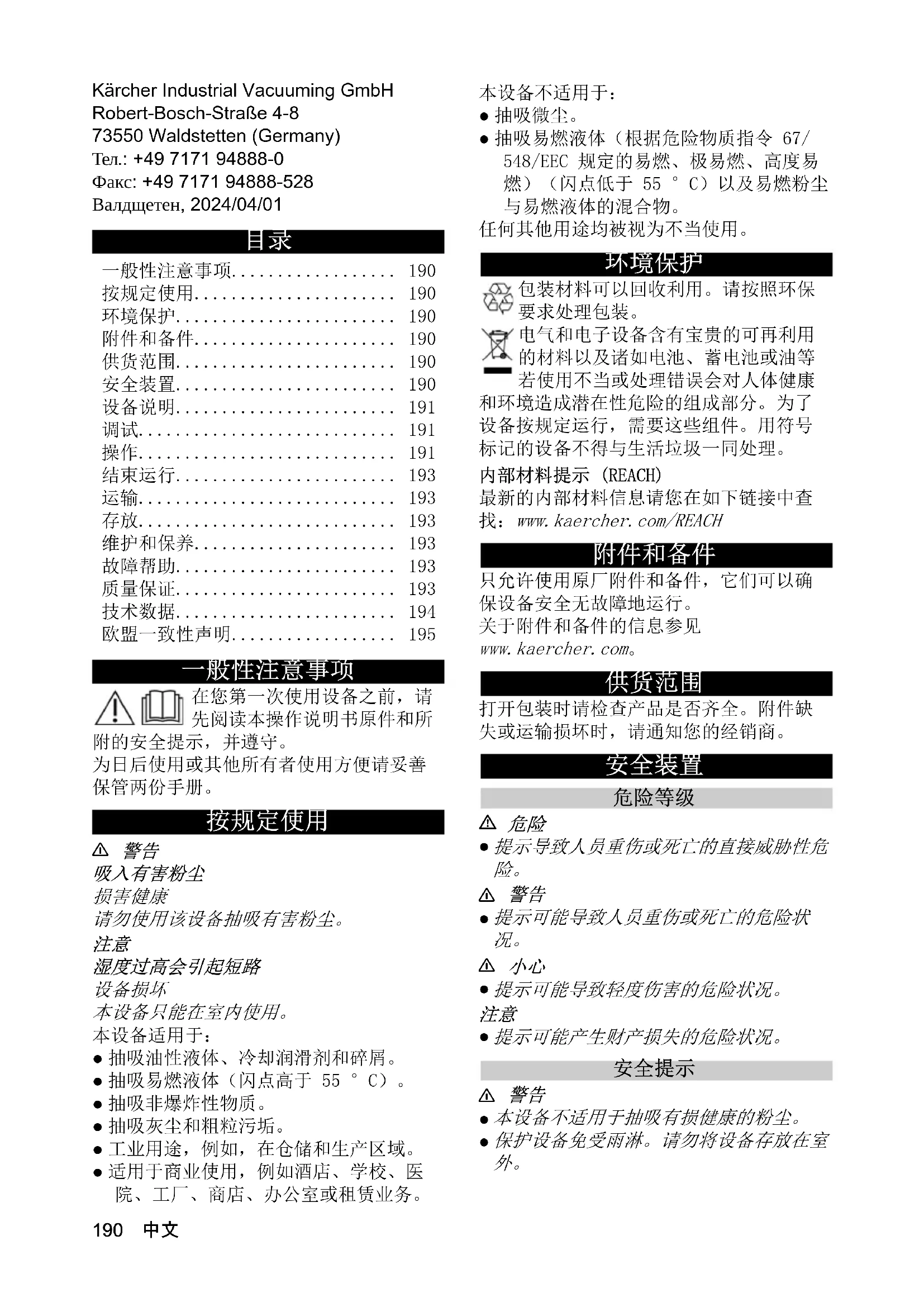 更多的质量保证信息(如果有)可以在您 当地 Kärcher 网站服务区的“下载”下 找到。194 中文