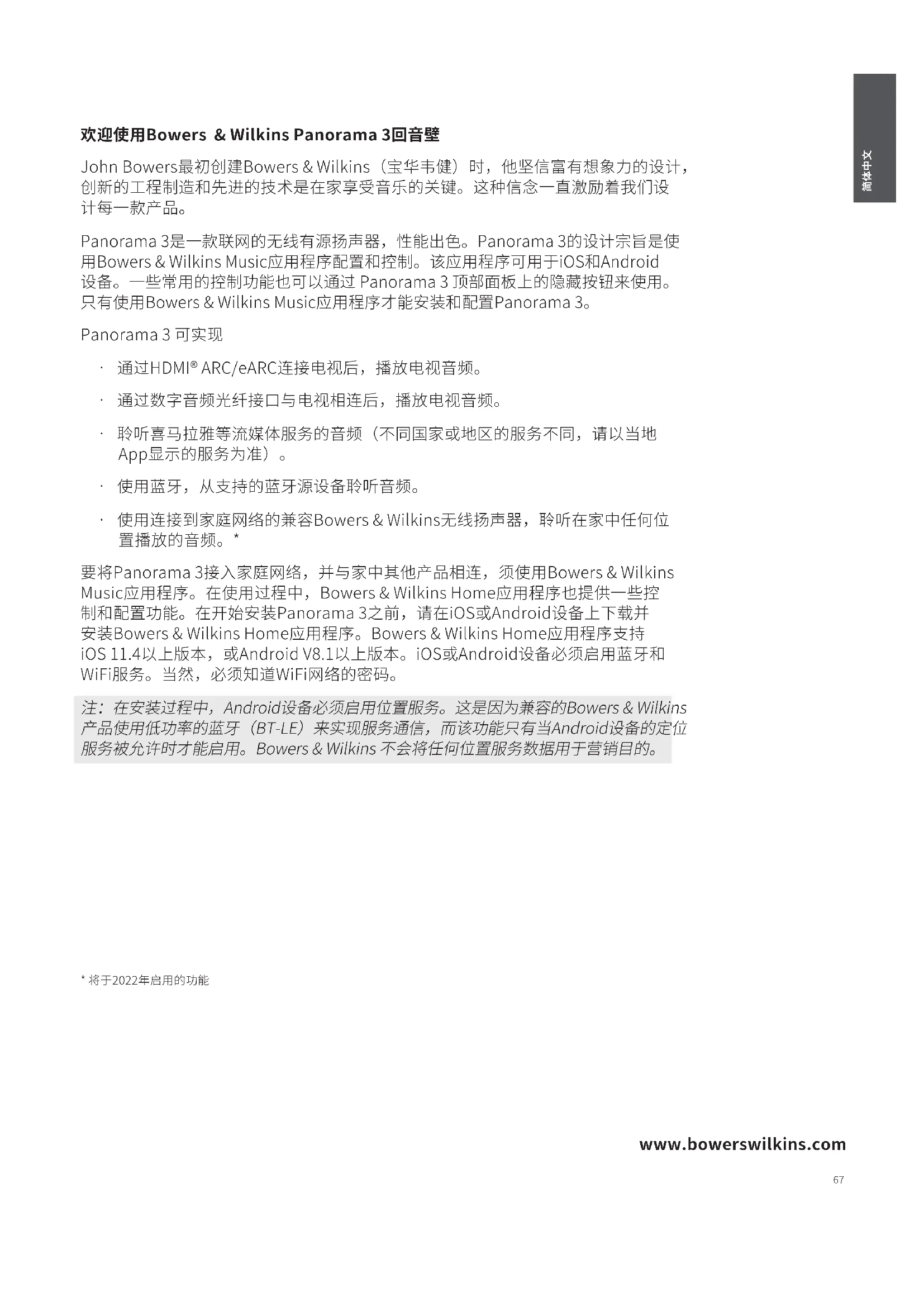 用户手册 Panorama 3 BOWERS & WILKINS