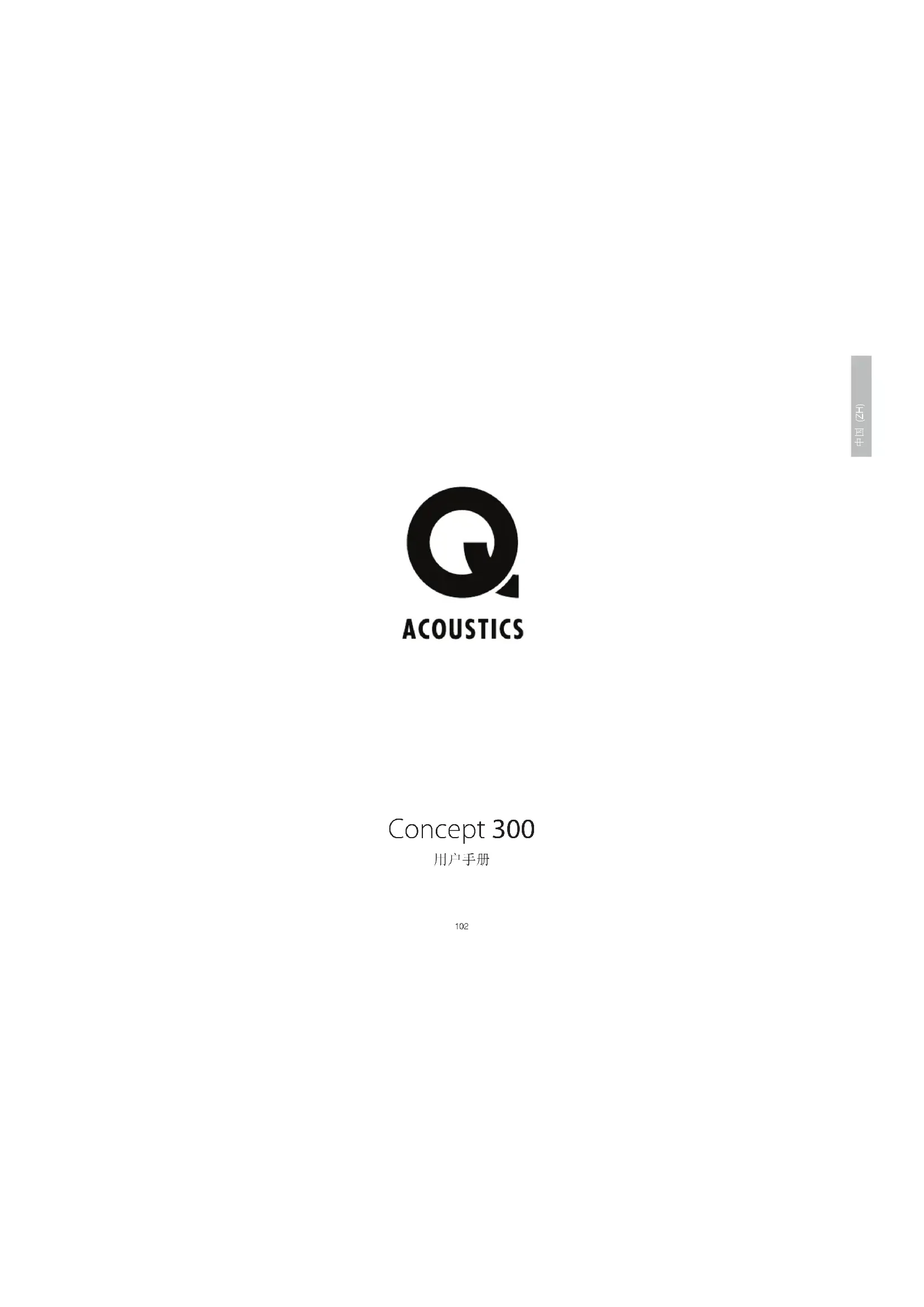 该标志表示丢弃该装置时,必须将其与生 活垃圾分开,送往单独的收集场所,以便 回收利用电子电气设备。 请确保熟悉关于单独收集电子电气产品的 当地法规。104 105 中国 (ZH) 感谢您购买 Q Acoustics Concept 300。 本手册旨在引导您完成 Concept 300 的安装与设置过程。它会帮助您 轻松完成设置,确保您获得产品的最佳性能。 请在安装和使用之前仔细阅读操作指南、重要安全信息和警告,以确保