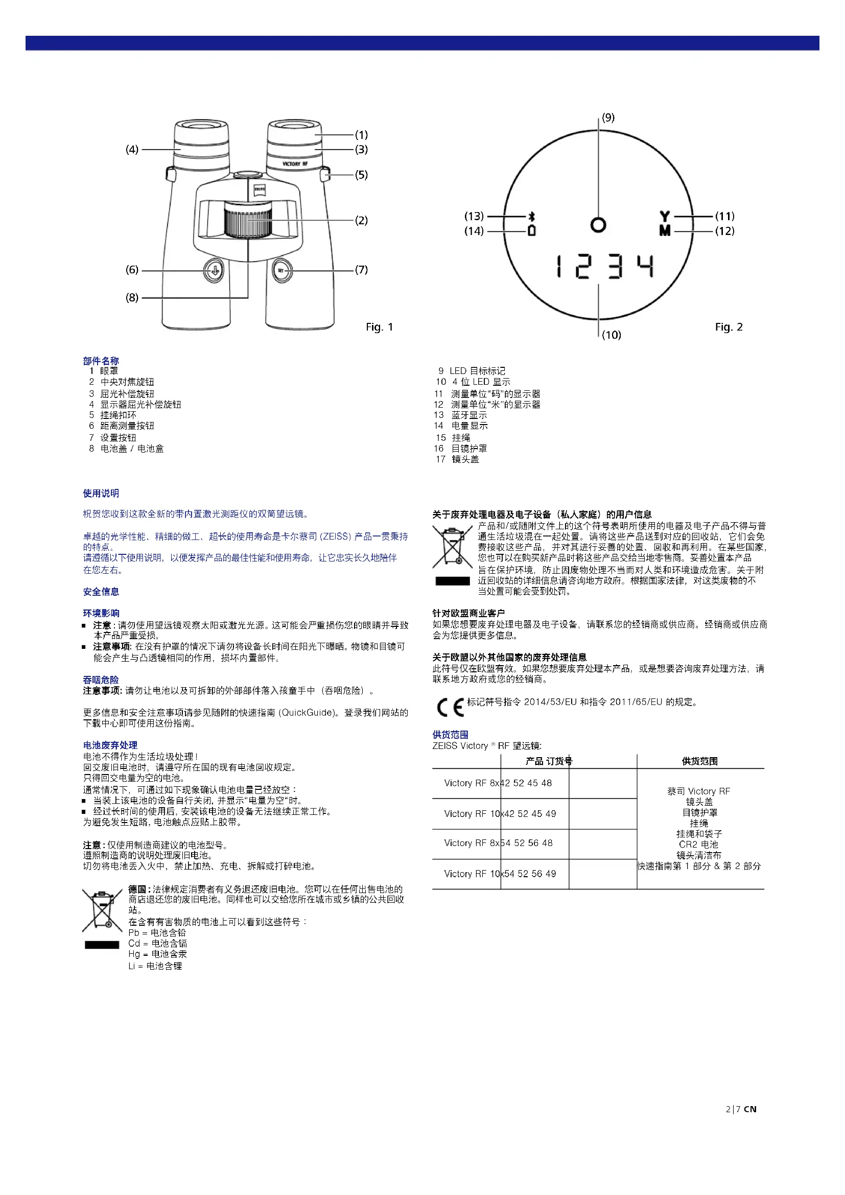 免费查找设备手册 Victory RF 8x42 ZEISS PDF格式.