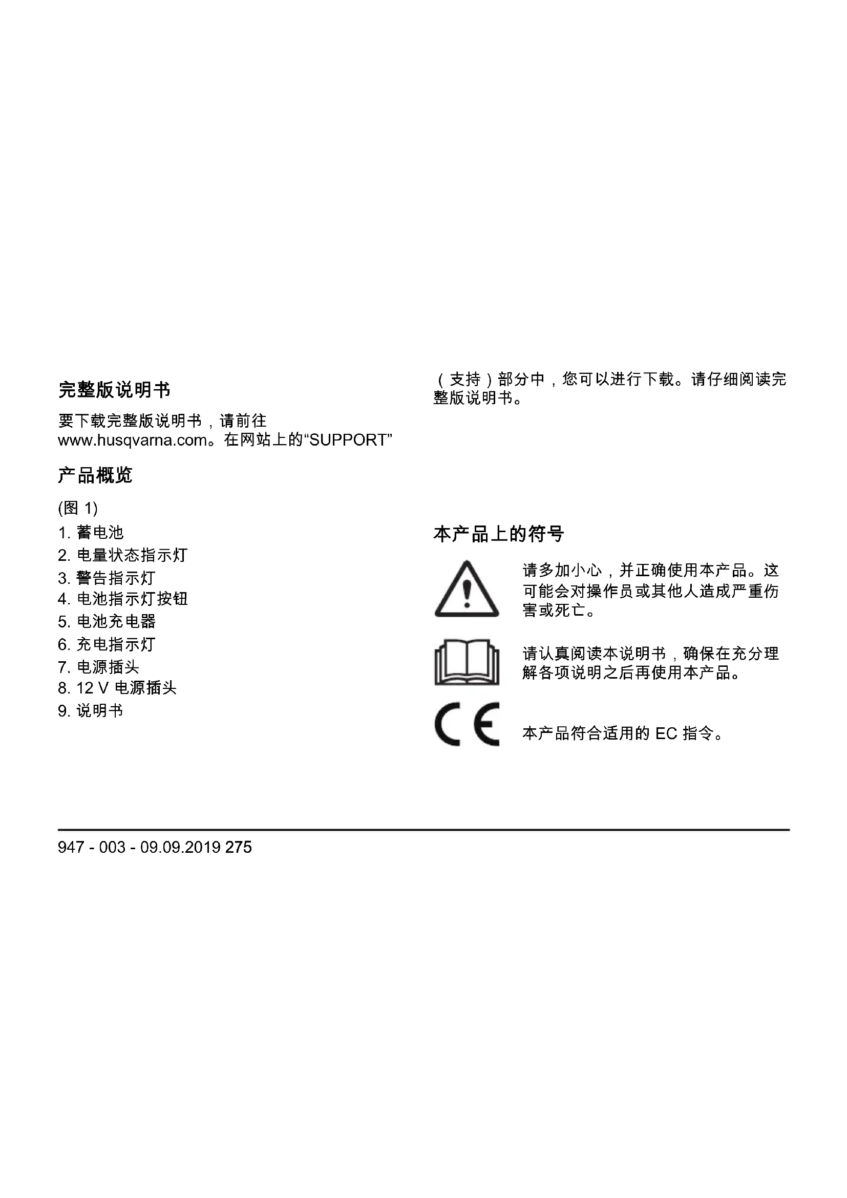 947 - 003 - 09.09.2019 275本产品或产品包装不属于生活垃圾。