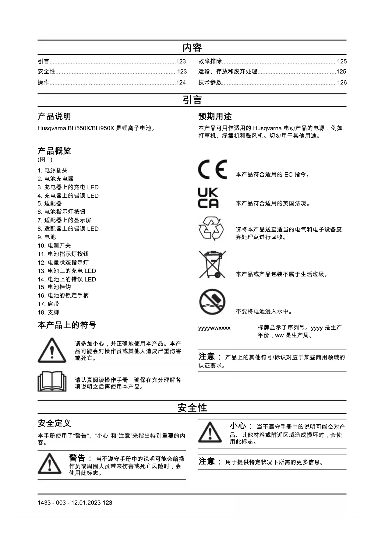 用户手册 BLi550X HUSQVARNA
