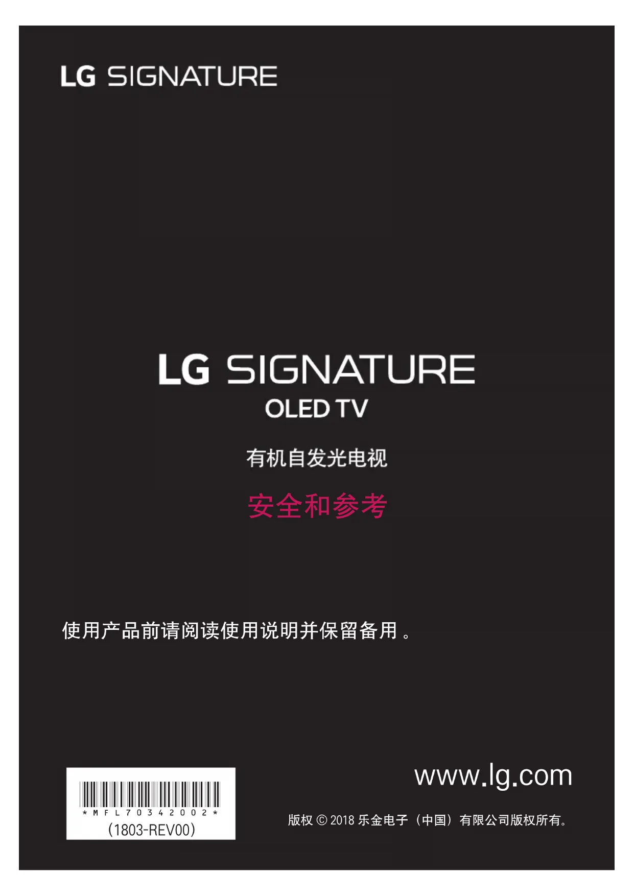 使用产品前请阅读使用说明并保留备用 。 版权 © 2018 乐金电子(中国)有限公司版权所有。 *MFL70342002* (1803-REV00)2