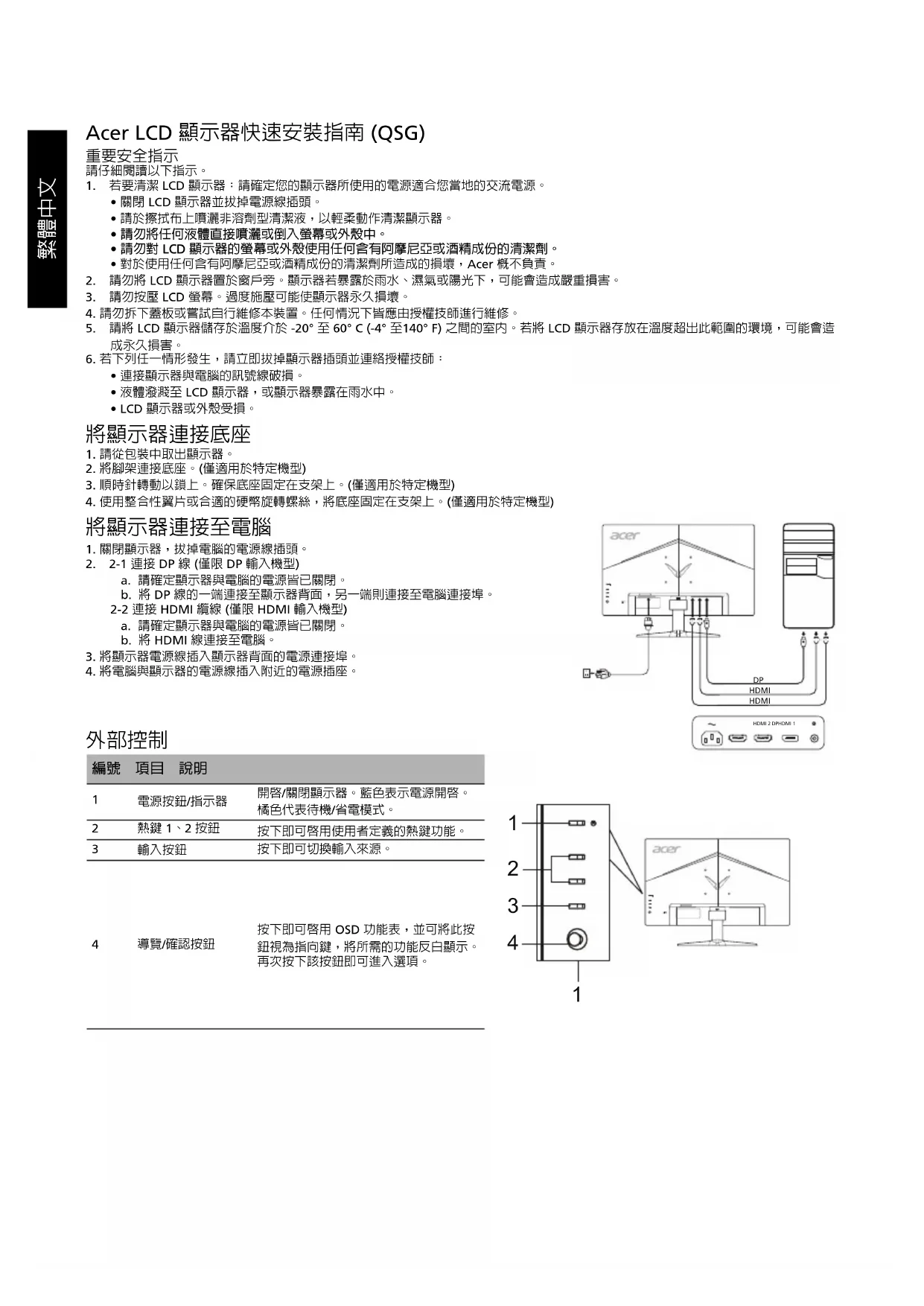 Acer LCD 顯示器快速安裝指南 (QSG)