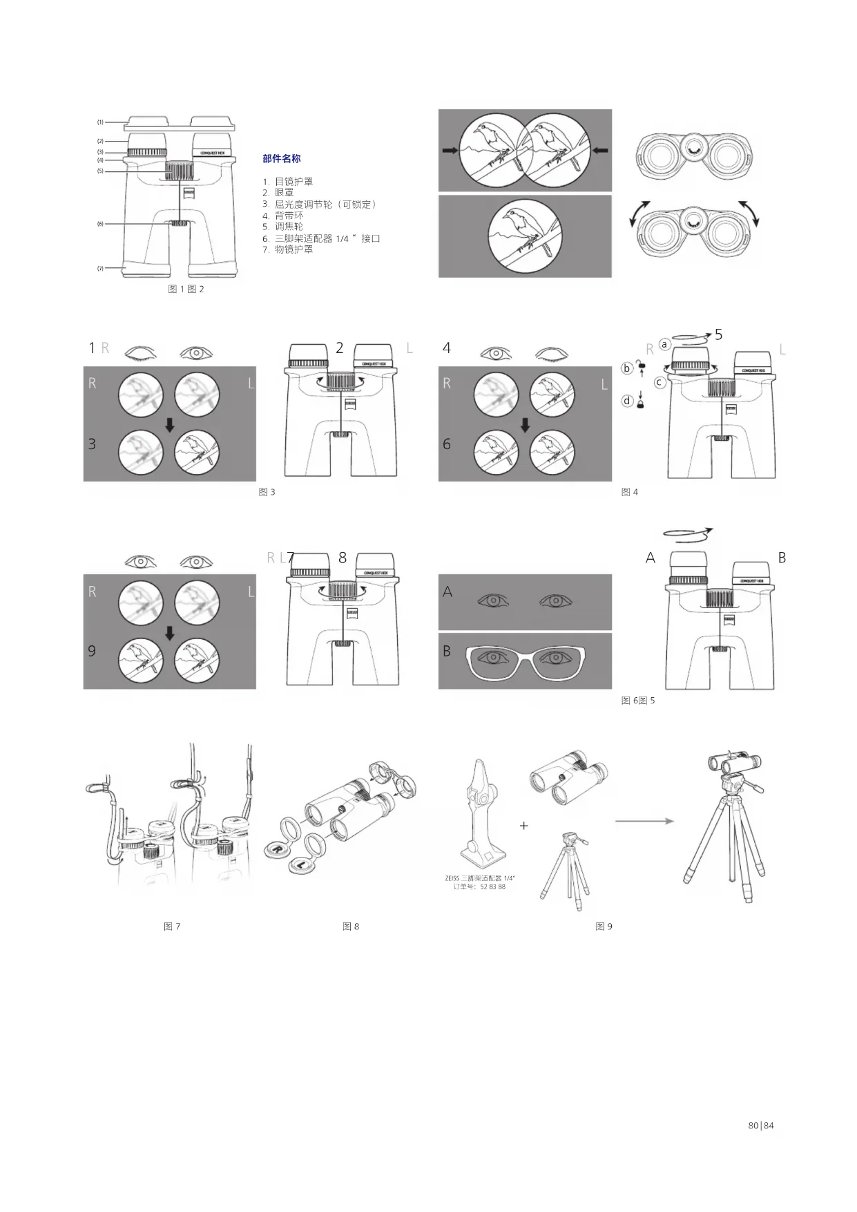 ZEISS 三脚架和三脚架适配器及其他配件的订货号,请查看“ ZEISS CONQUEST HDX